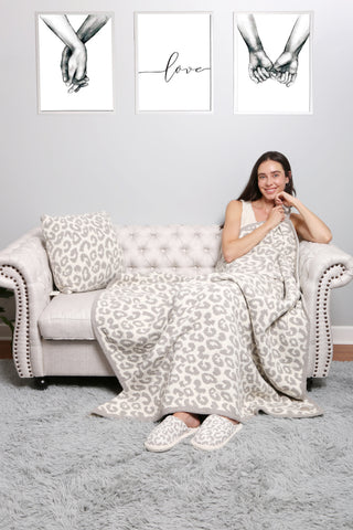 Stay comfortable, stay chic — our leopard throw blanket, cushion cover, and slippers set is your ultimate relaxation essential.