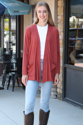 Solid Color Luxury Soft Cardigan W/ Pockets Ribbed Edges