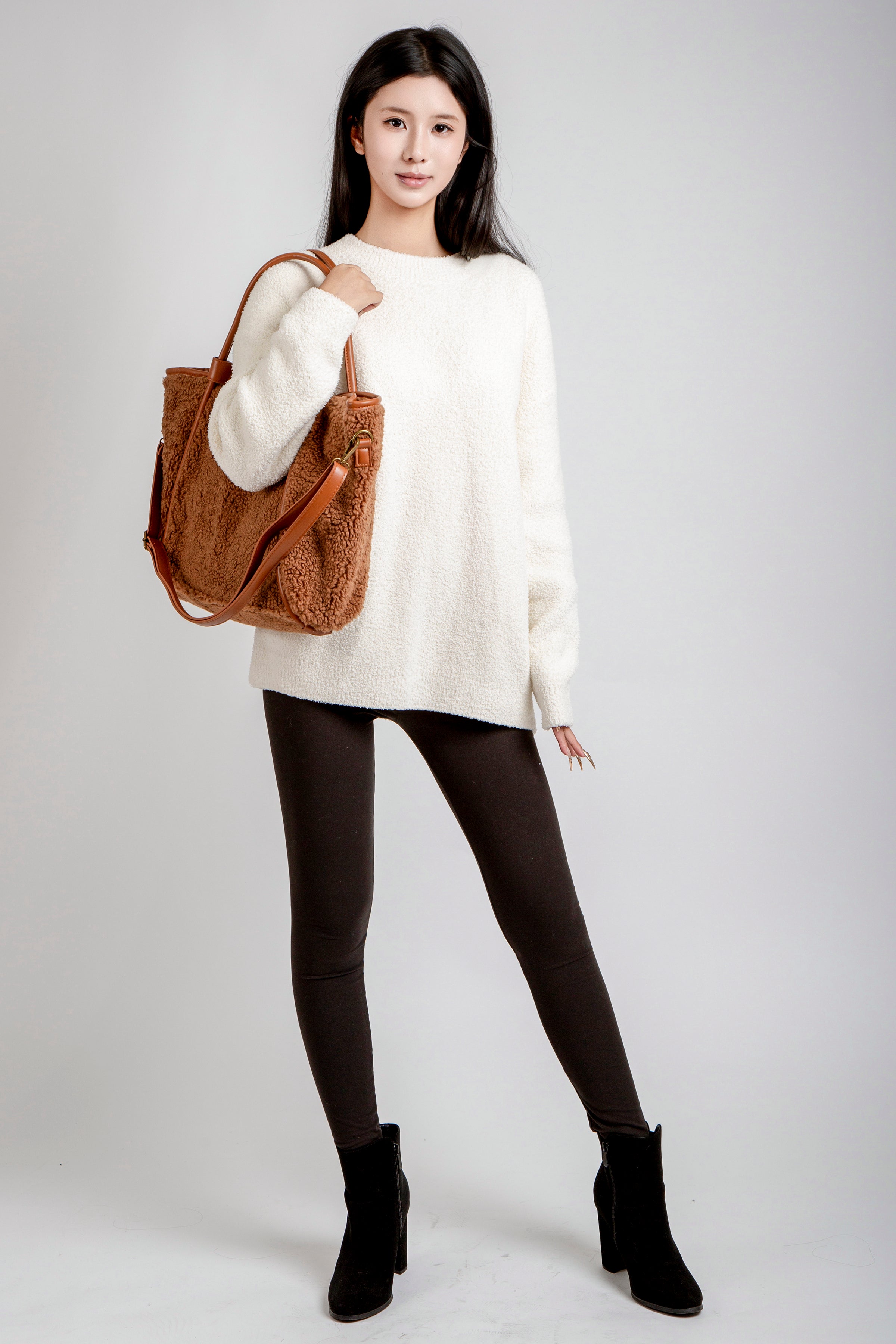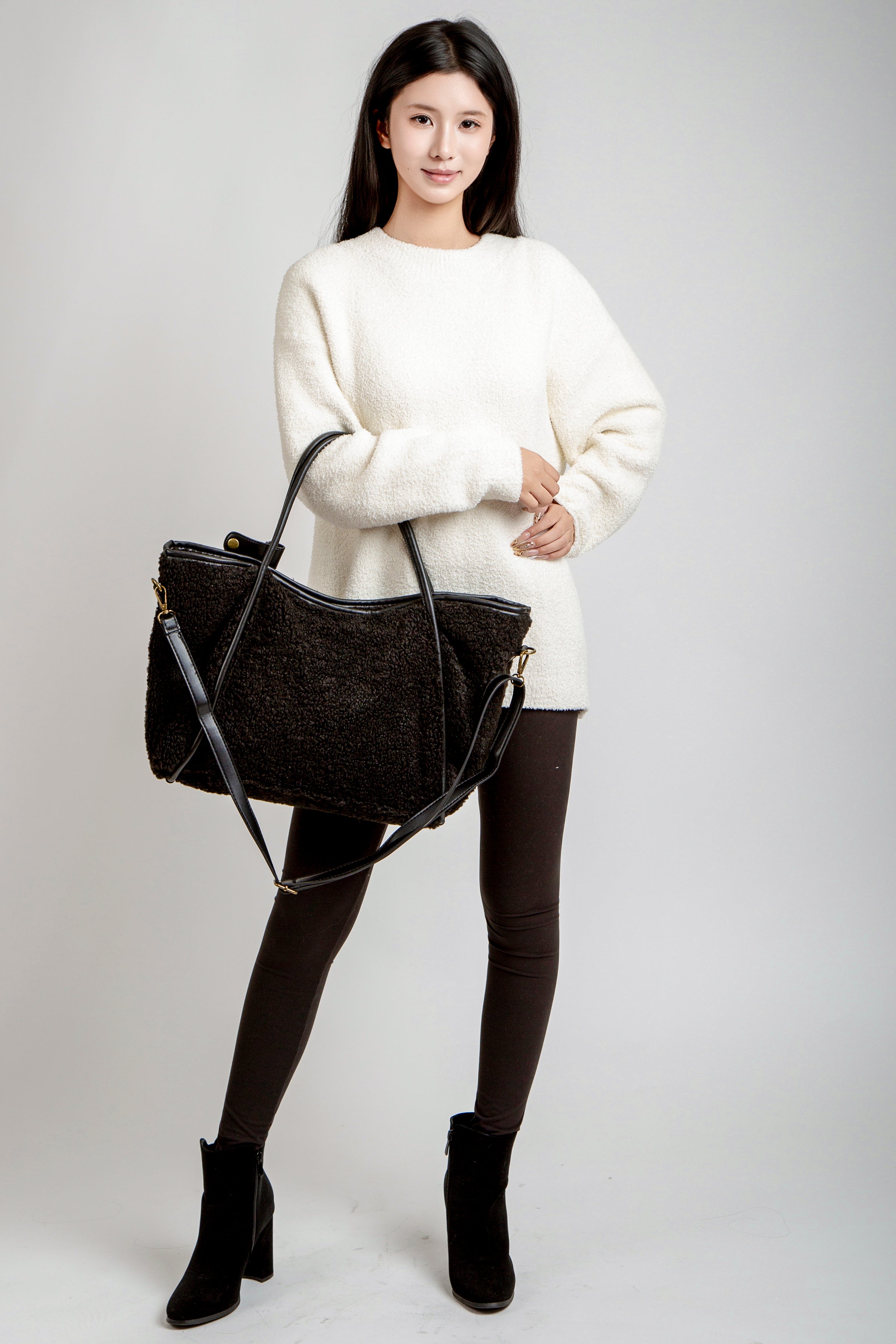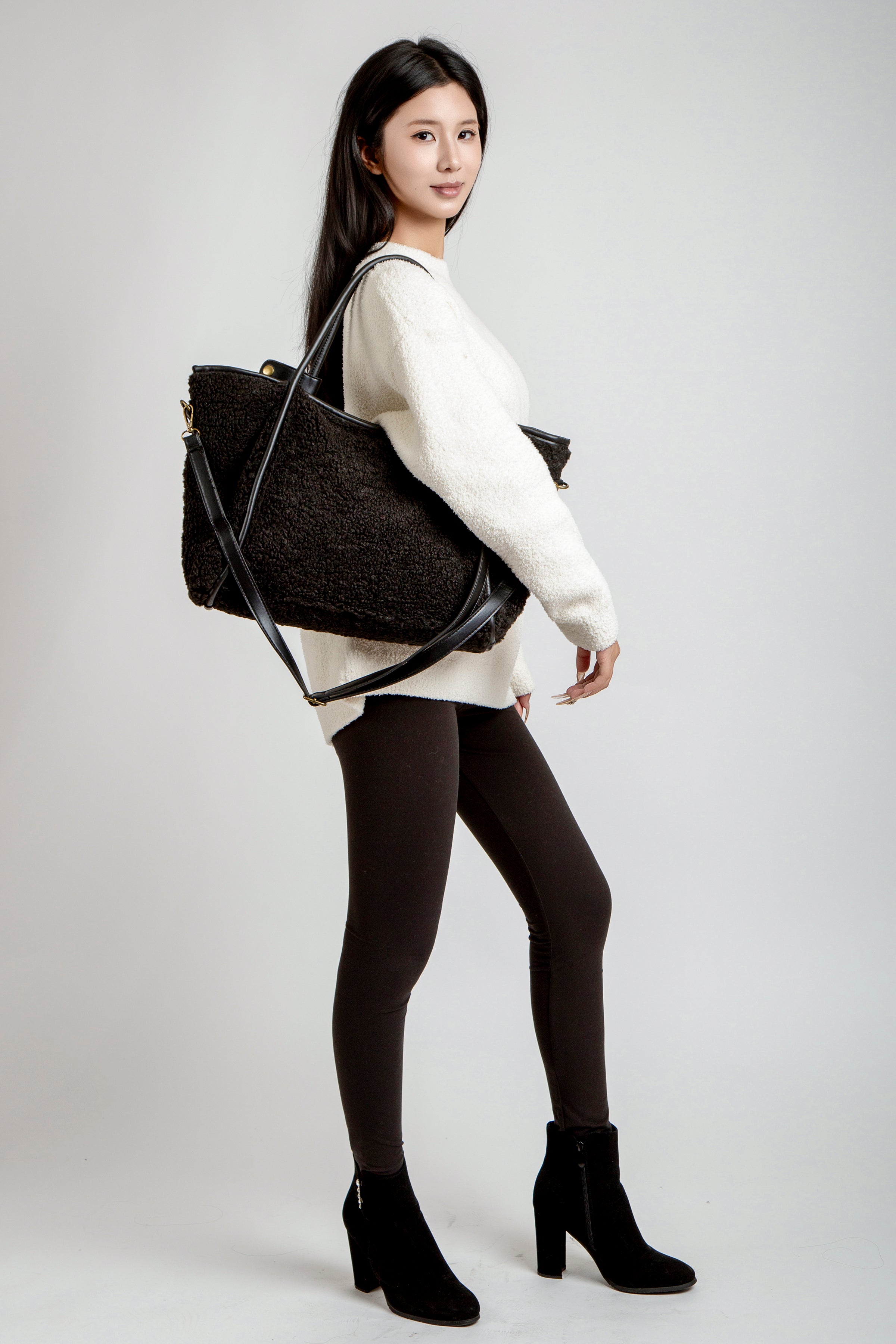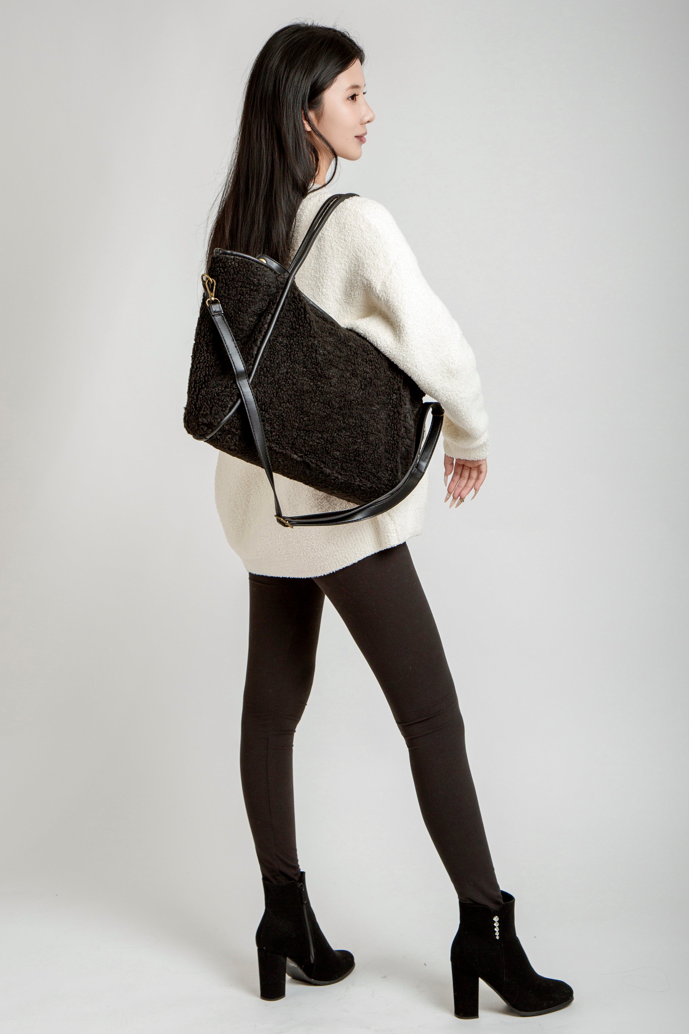 SOLID COLOR SHERPA TOTE BAG W/ ZIPPER CLOSURE