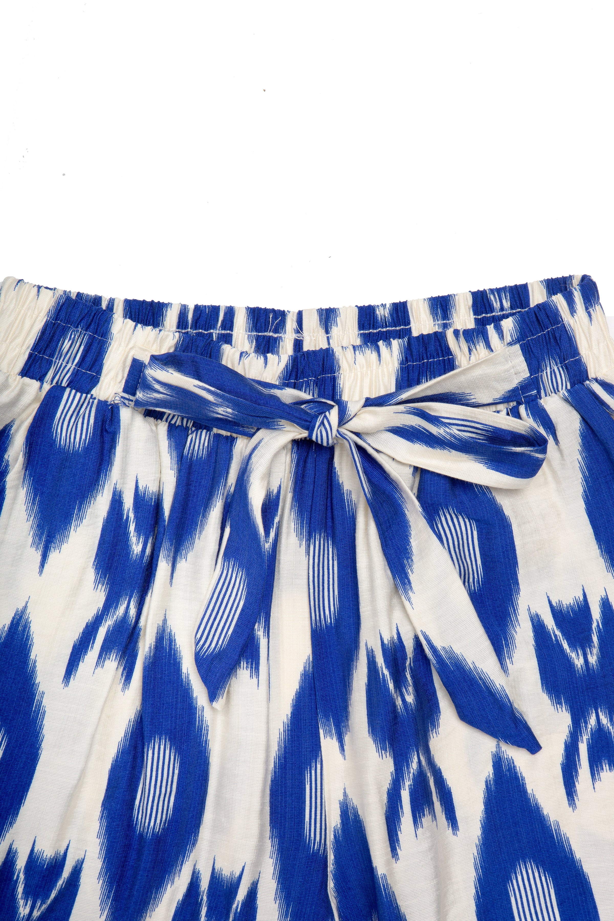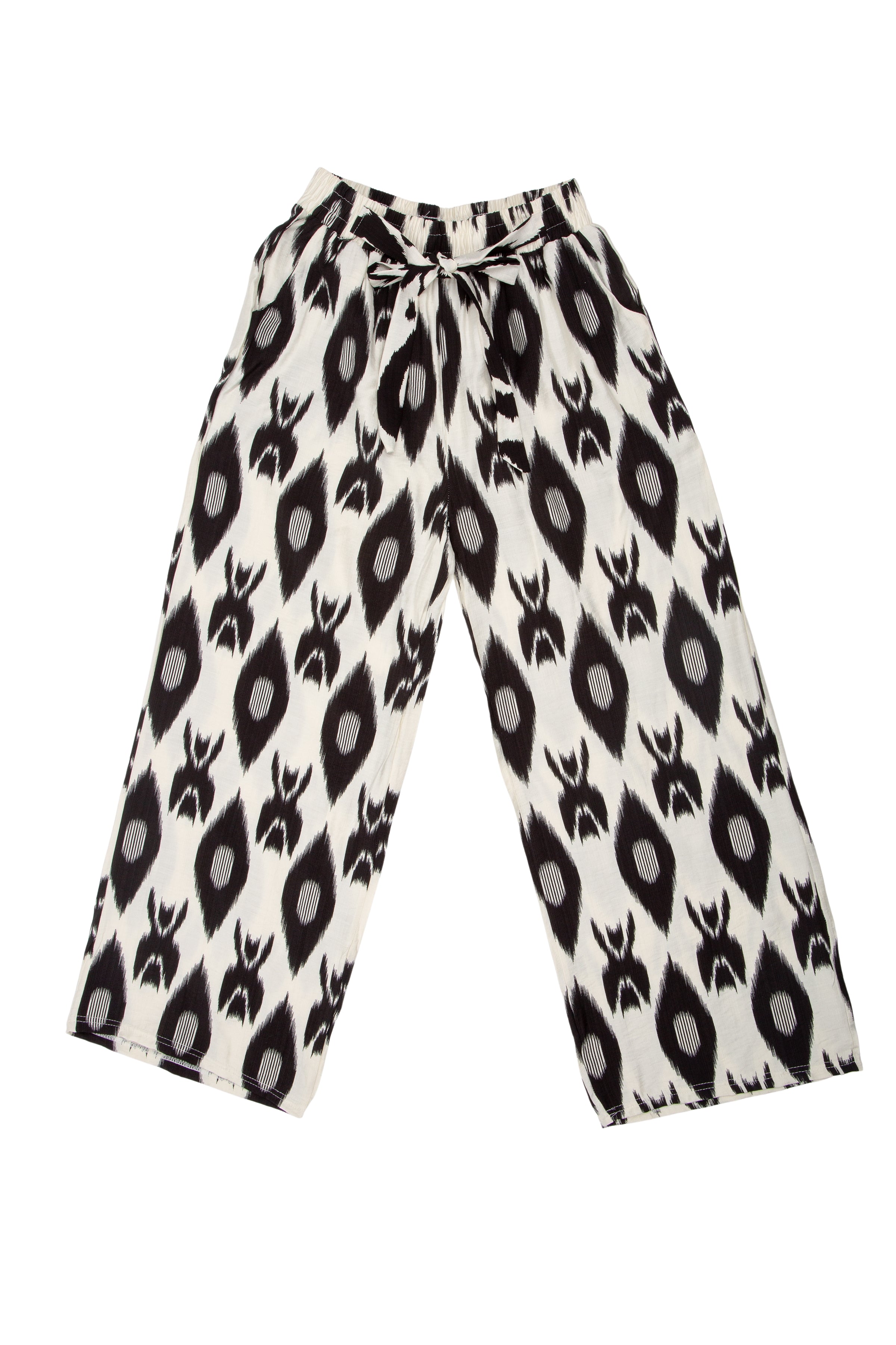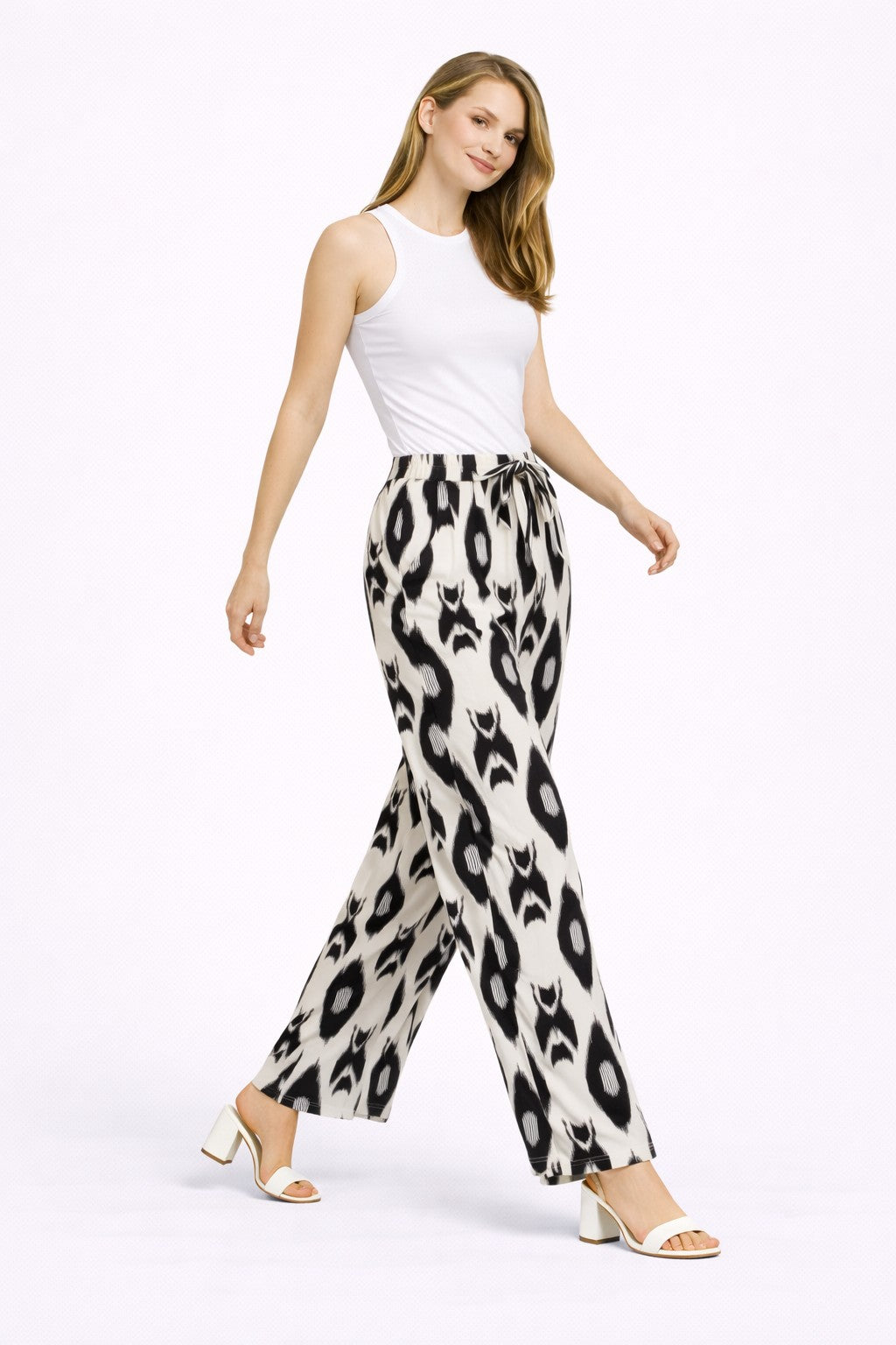 Abstract Pattern Wide-Leg Pants W/ Tie-Knot String & Pockets