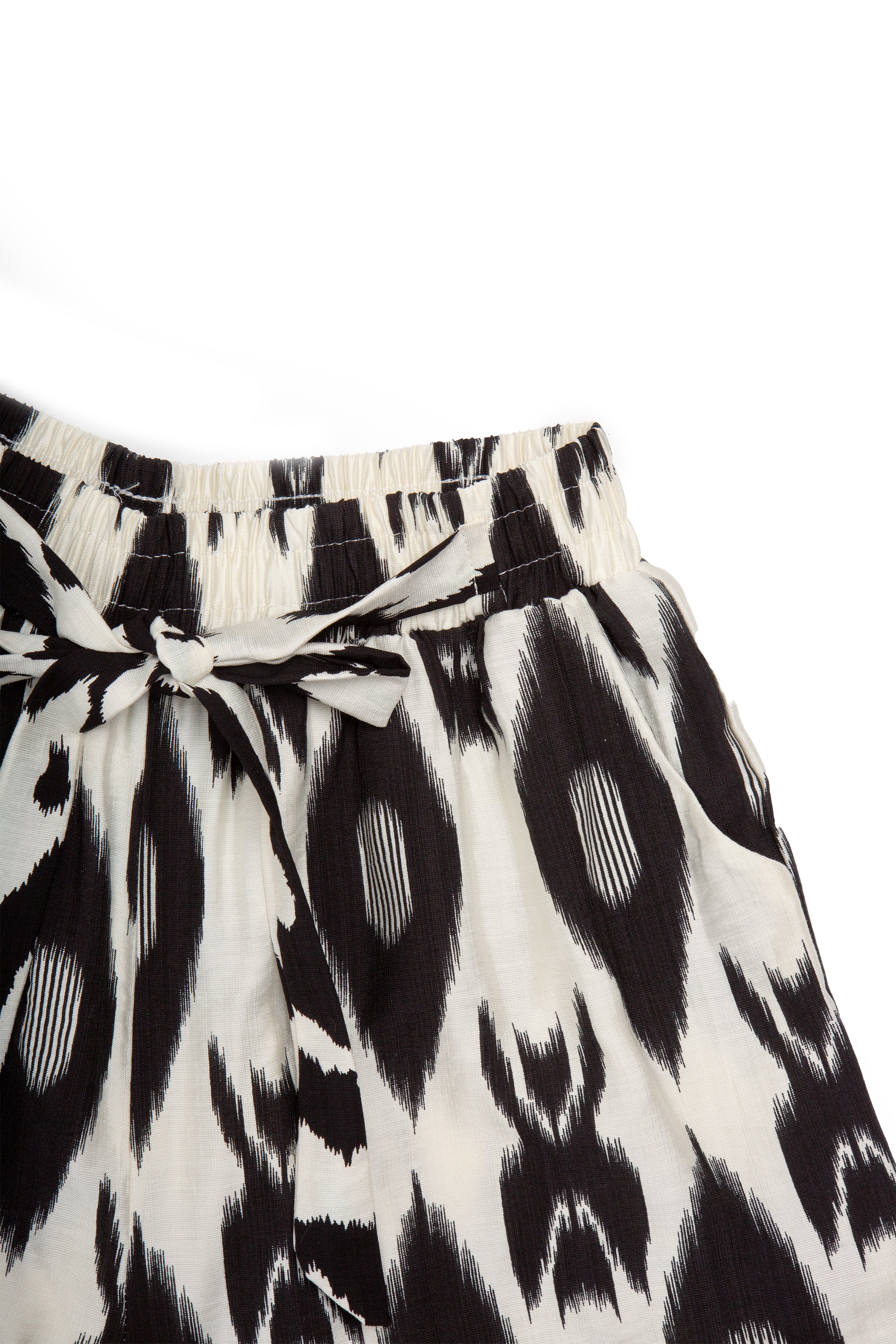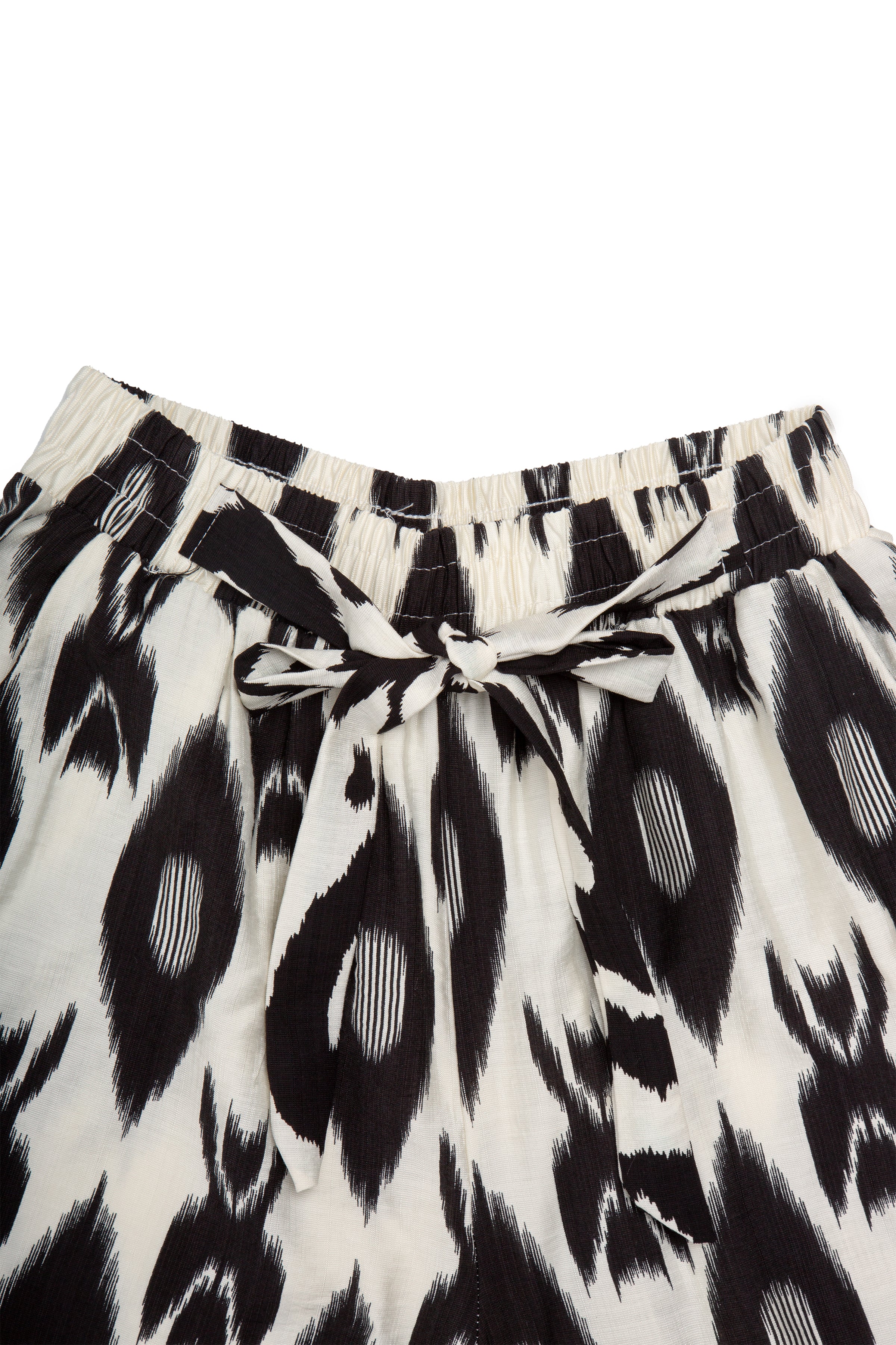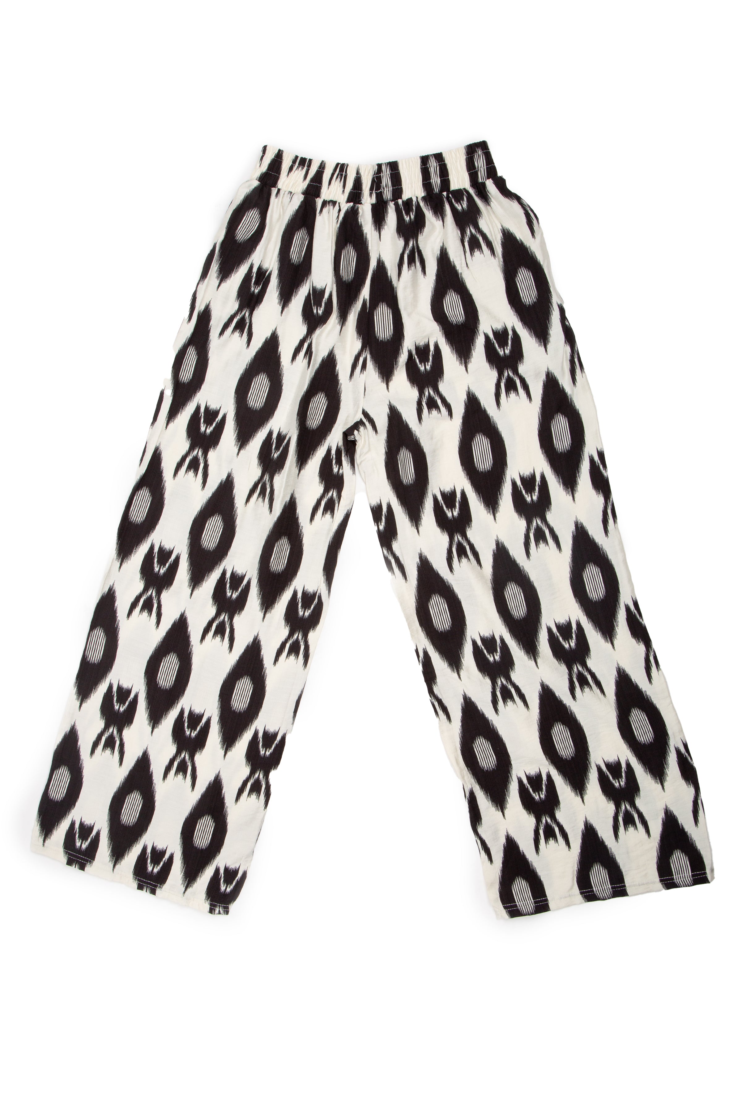 Abstract Pattern Wide-Leg Pants W/ Tie-Knot String & Pockets
