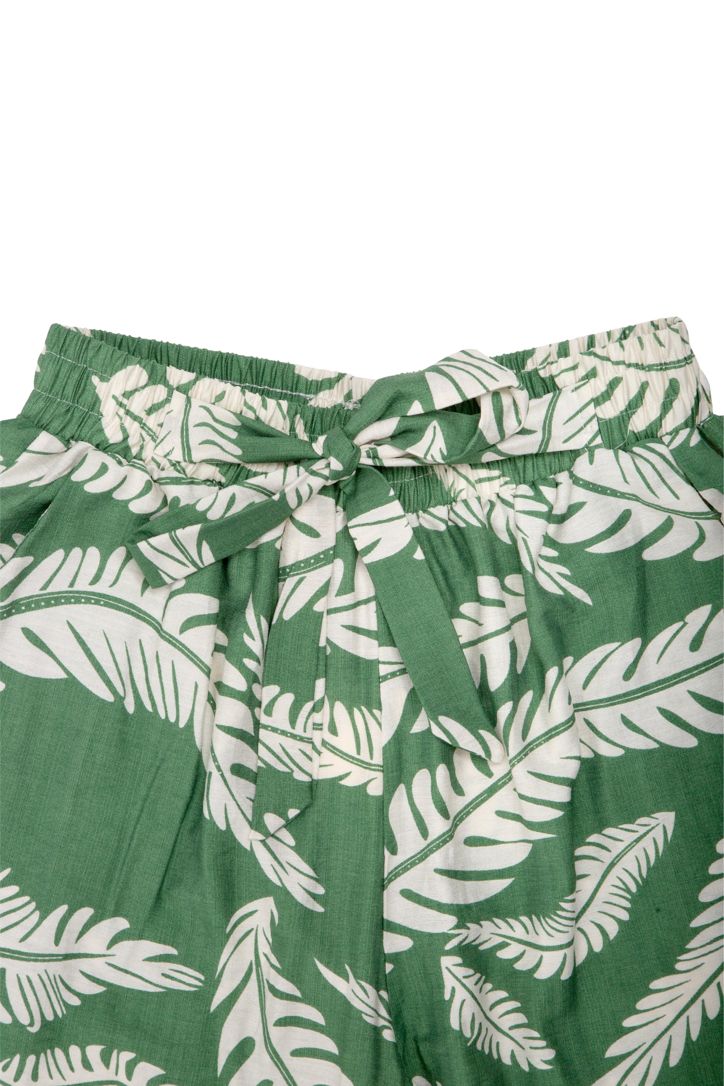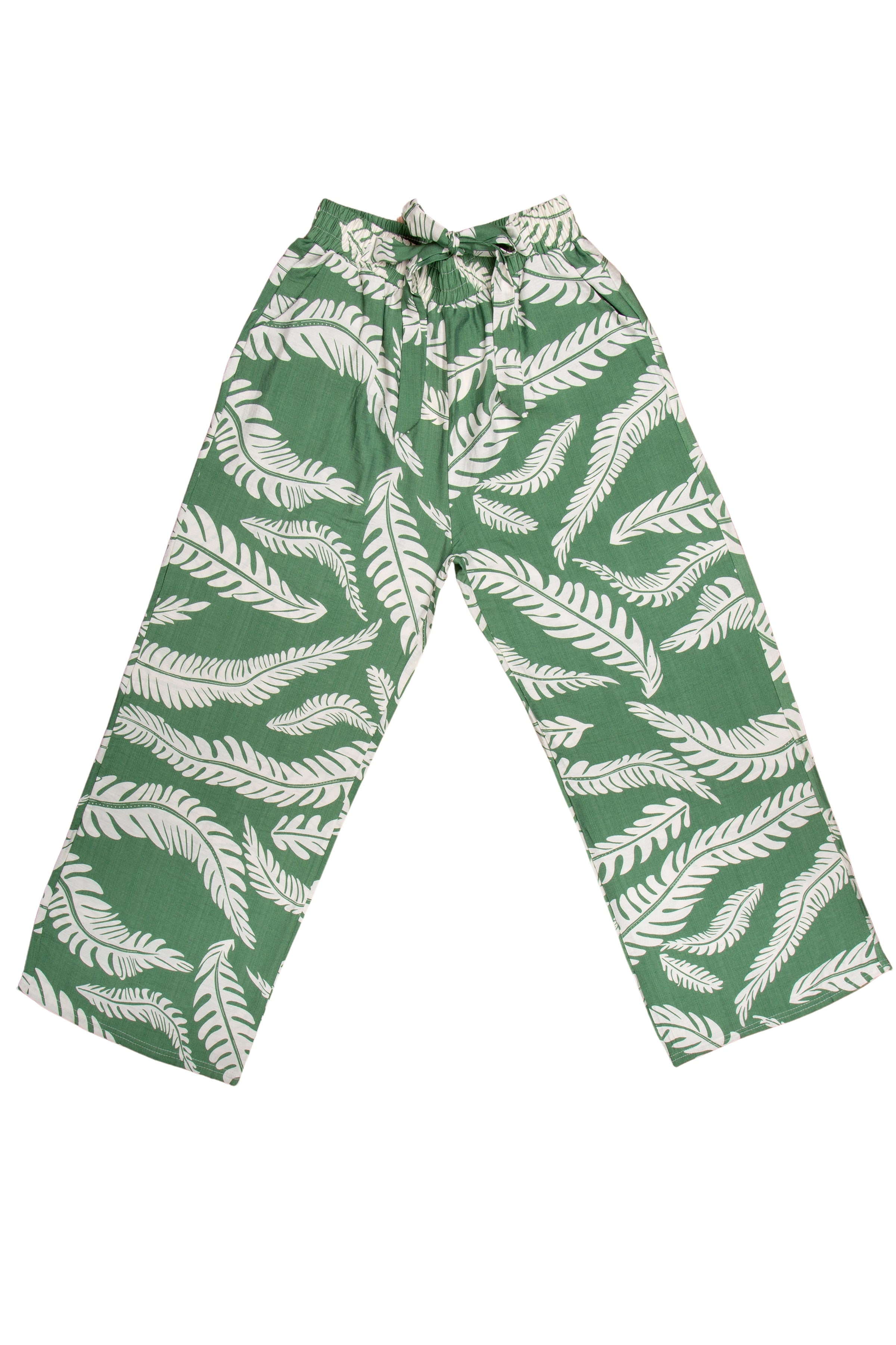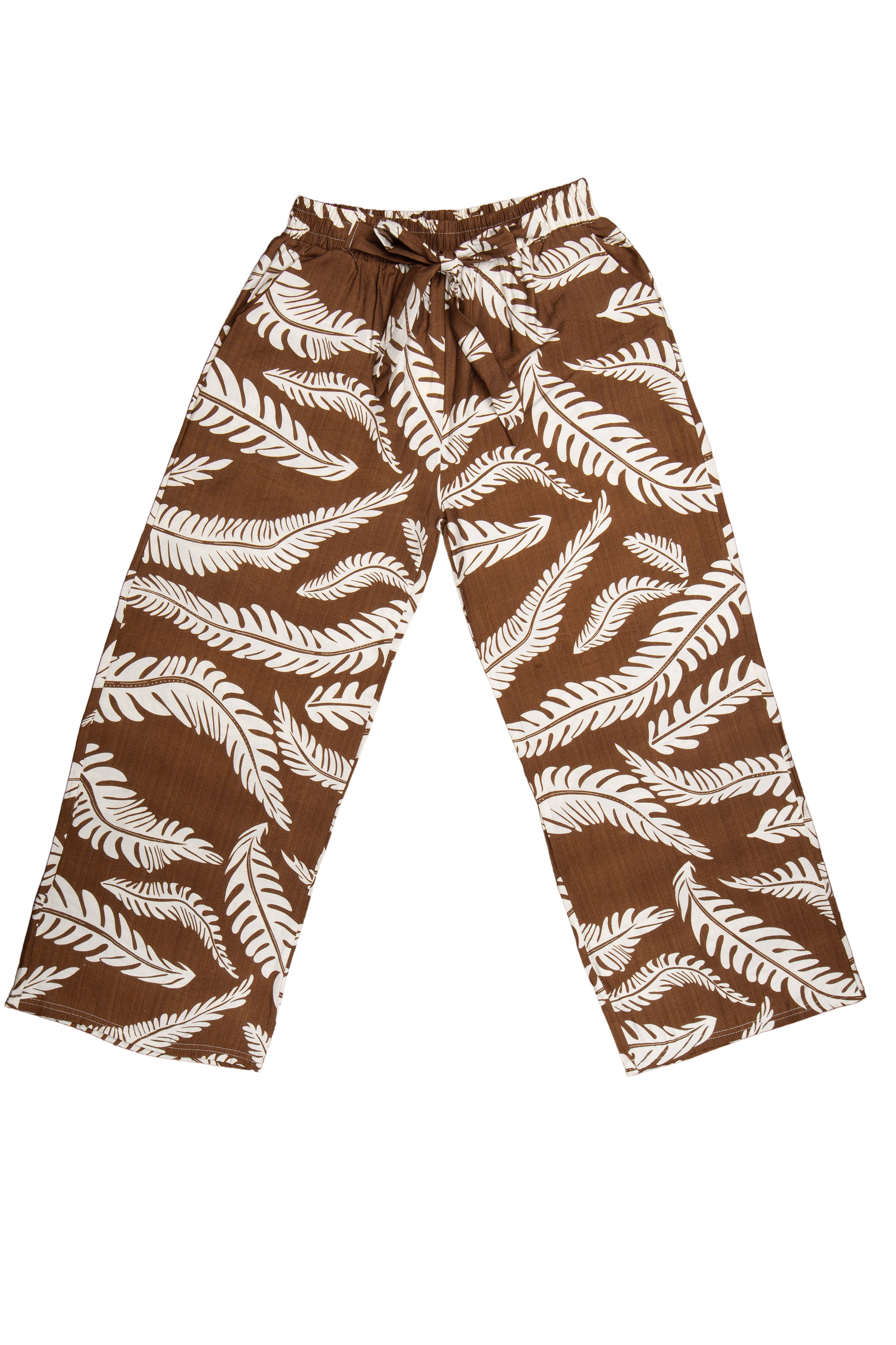 Leaves Pattern Wide-Leg Pants W/ Tie-Knot String & Pockets
