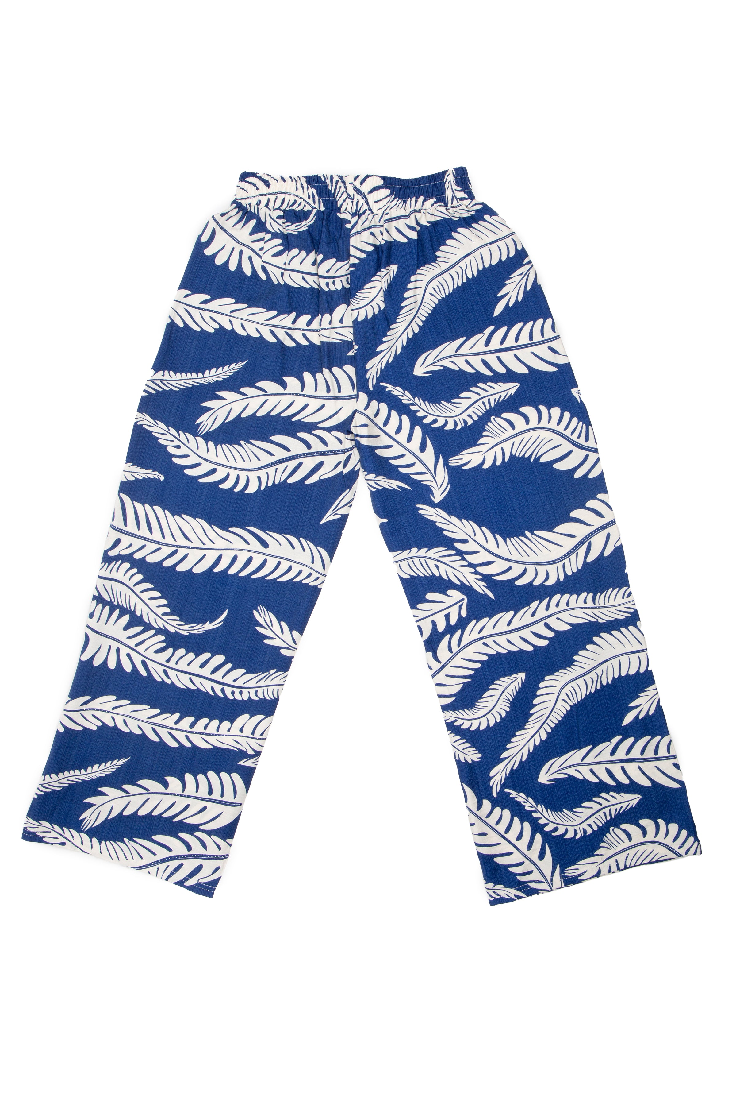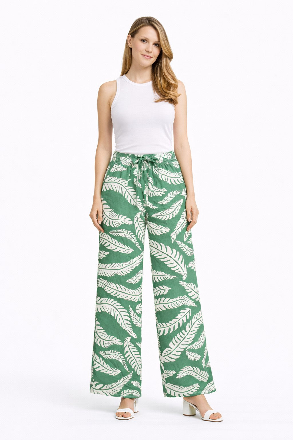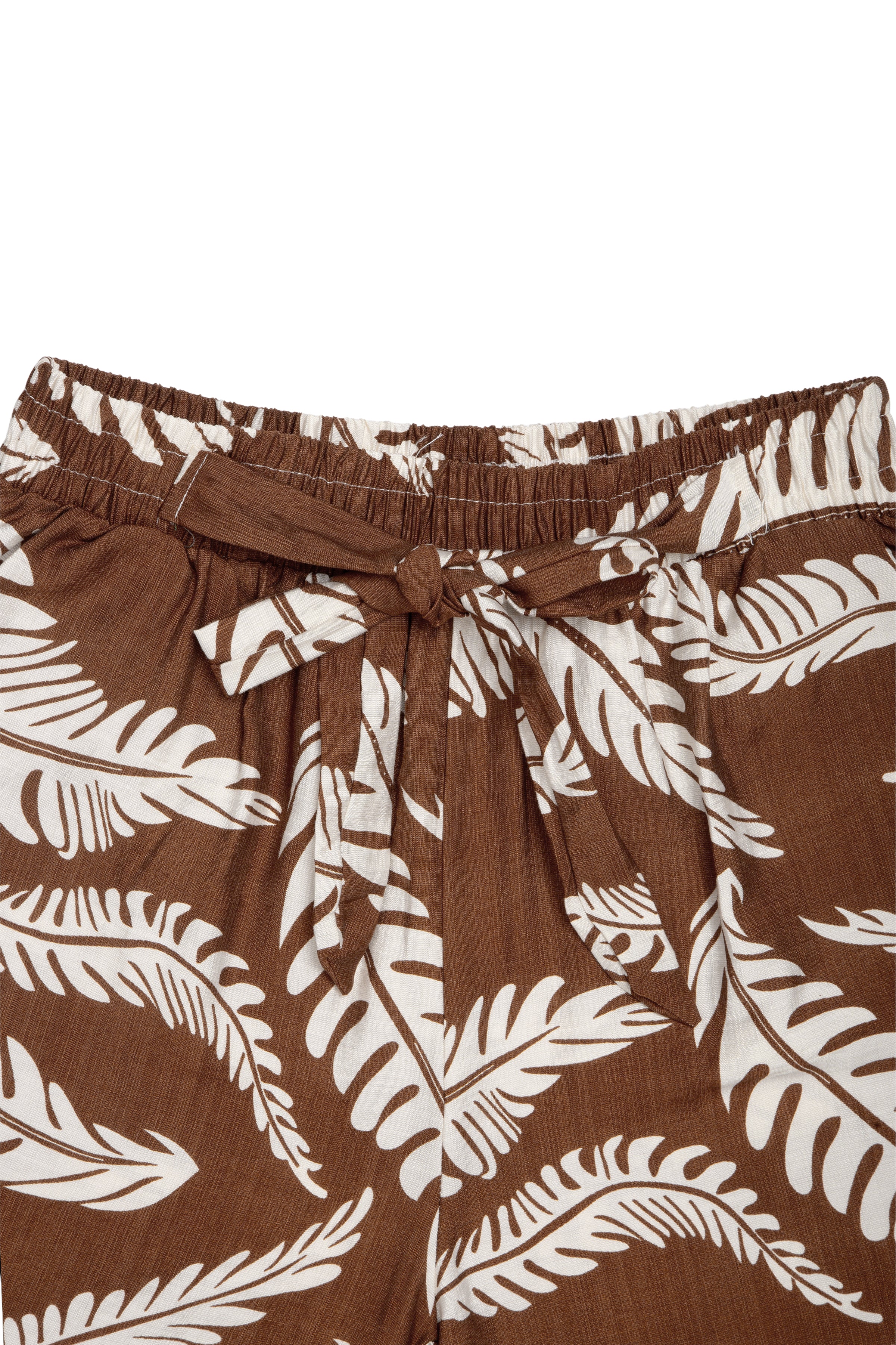 Leaves Pattern Wide-Leg Pants W/ Tie-Knot String & Pockets