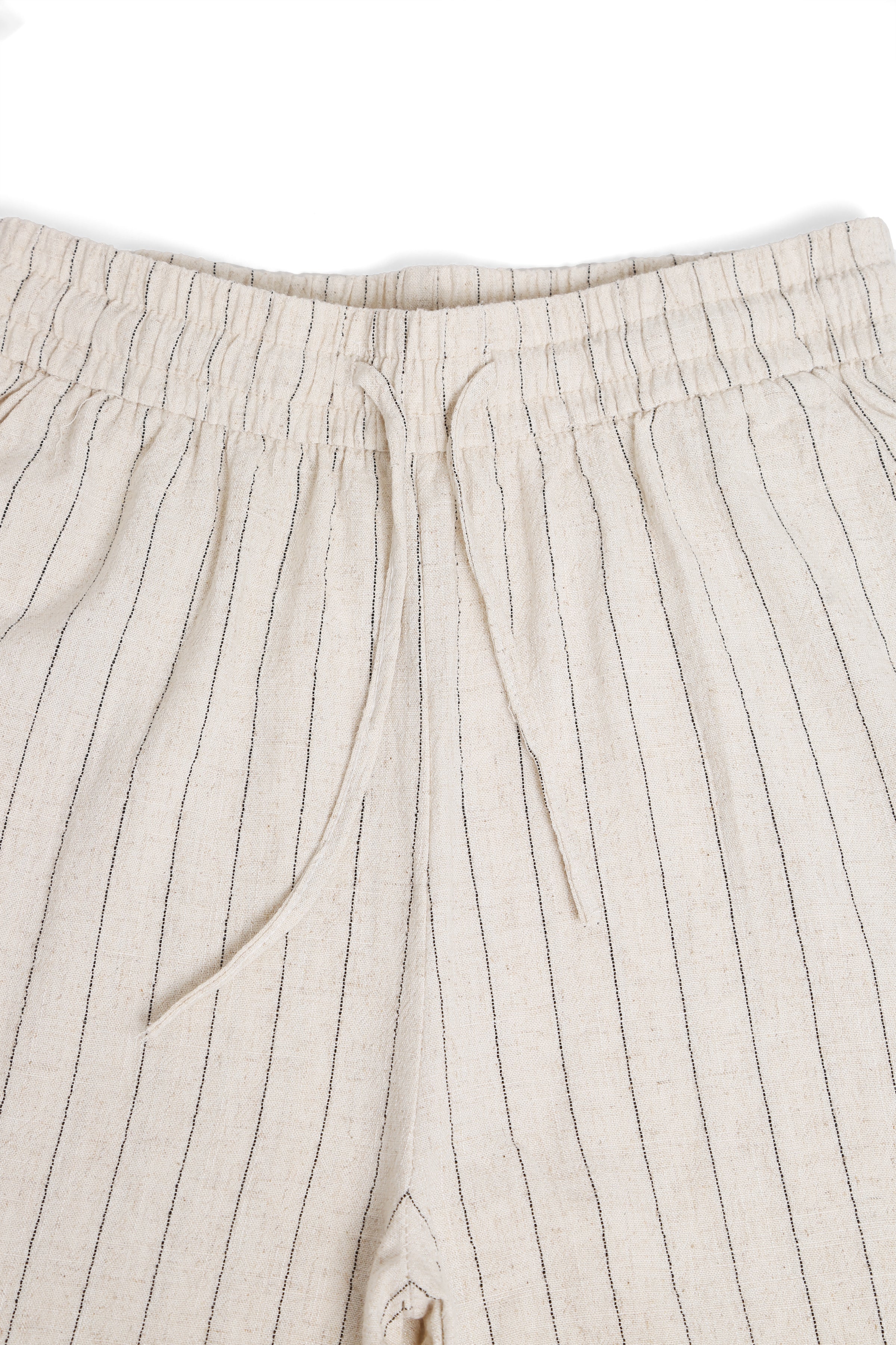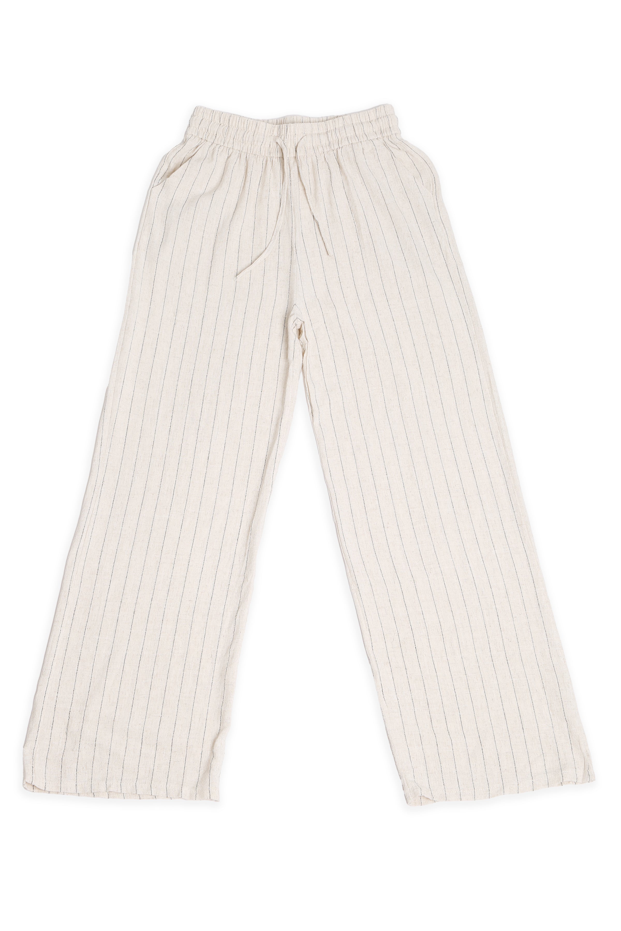 Linen Stiped Pattern Wide-Leg Pants W/ Drawstring & Pockets