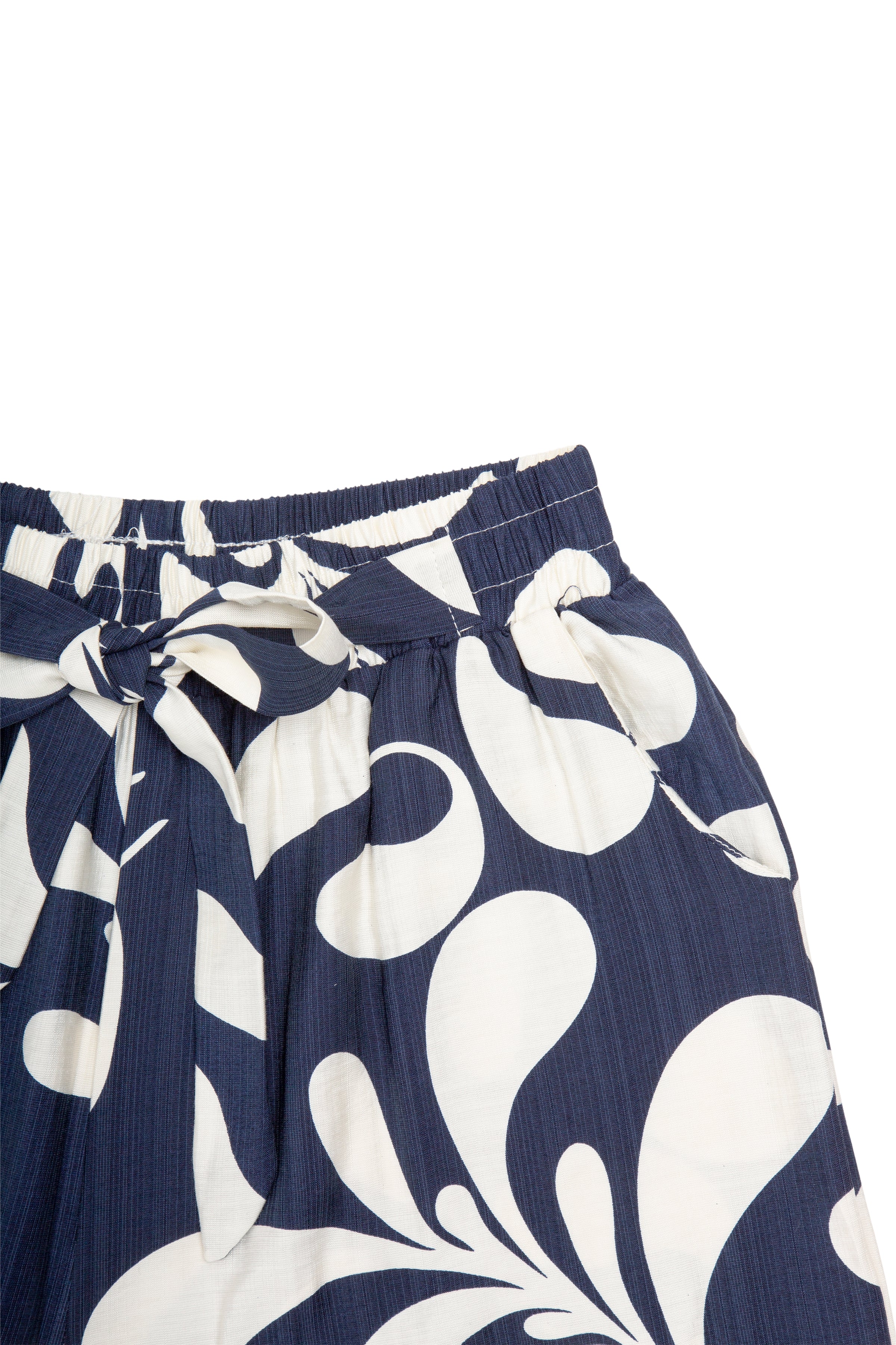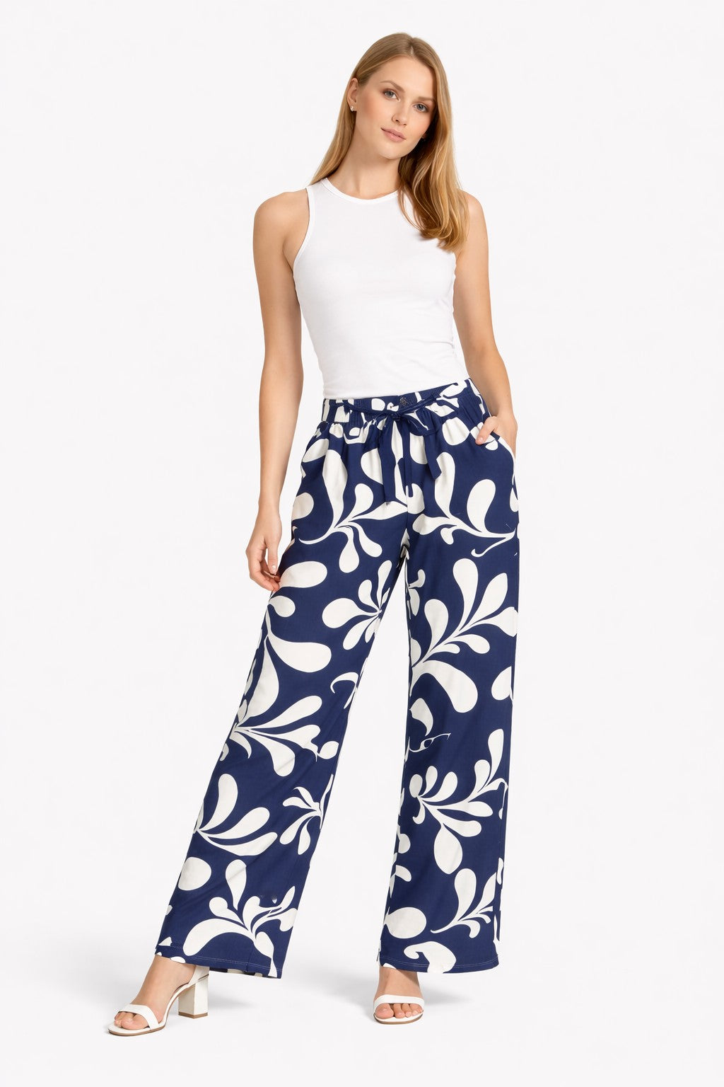 Tropical Pattern Wide-Leg Pants W/ Tie-Knot String & Pockets