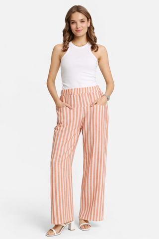 Linen Paisley & Floral Pattern Embroidered Wide-Leg Pants W/ Drawstring & Pockets