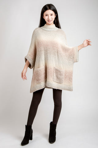 Color-Block Gradient Pullover Sweater W/ Pockets