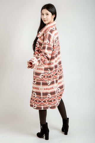 Tribal Pattern Oversized Shepra Jacket W/ Pockets Button Closure