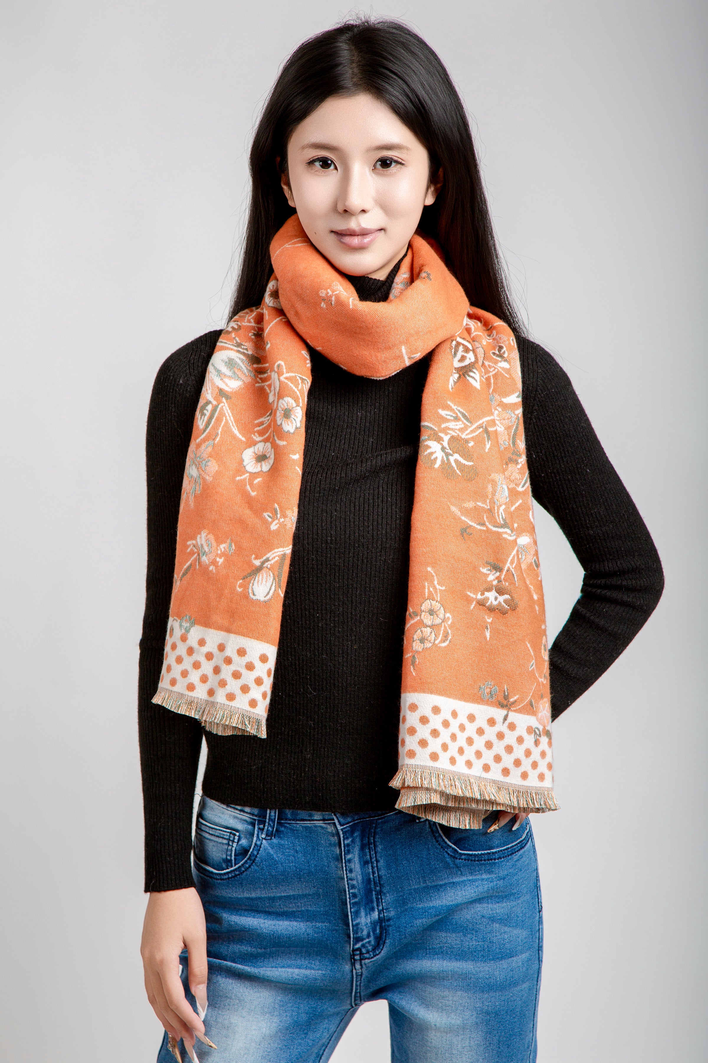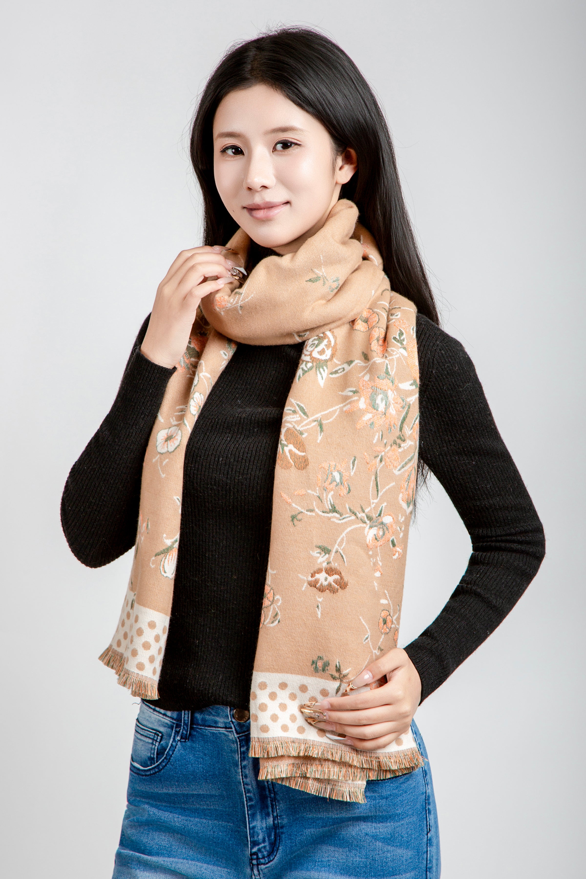 FLORAL & POLKA DOT PATTERN OBLONG SCARF W/ TRIM