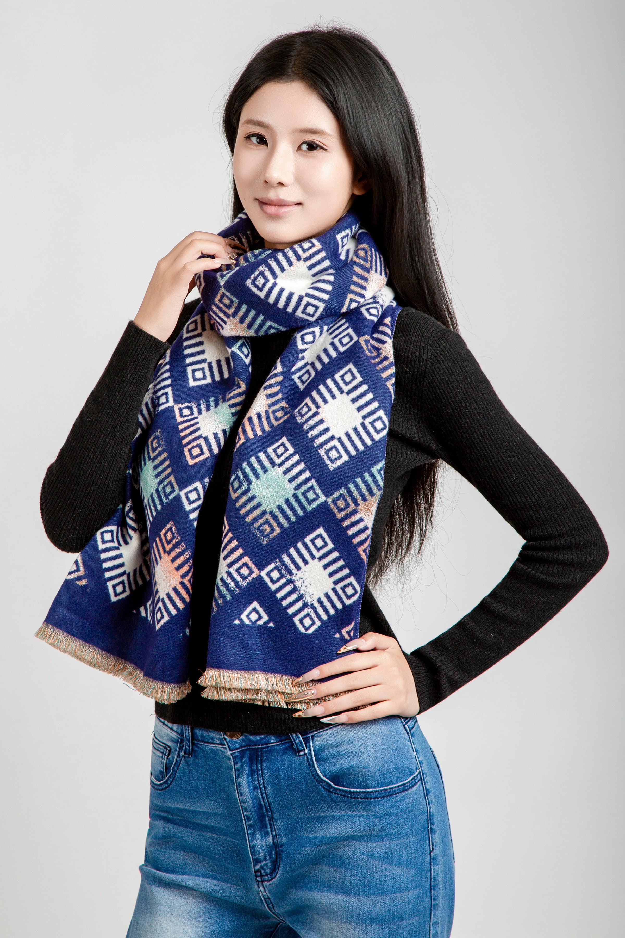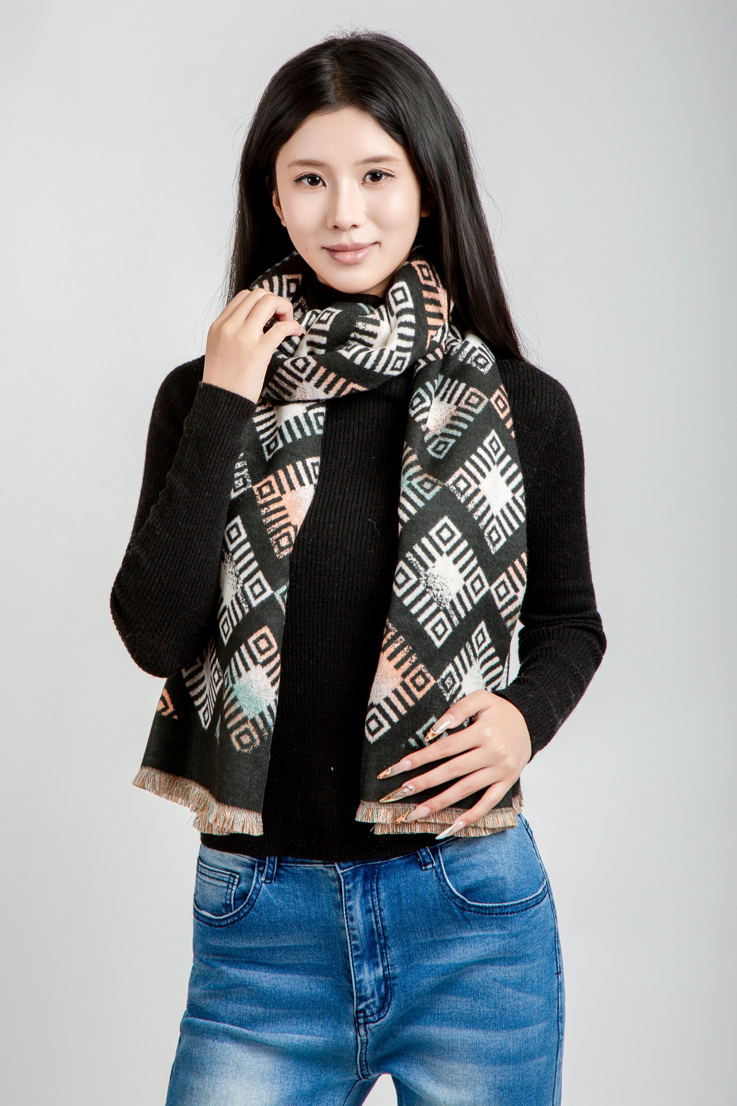 GEOMETRIC PATTERN OBLONG SCARF W/ TRIM