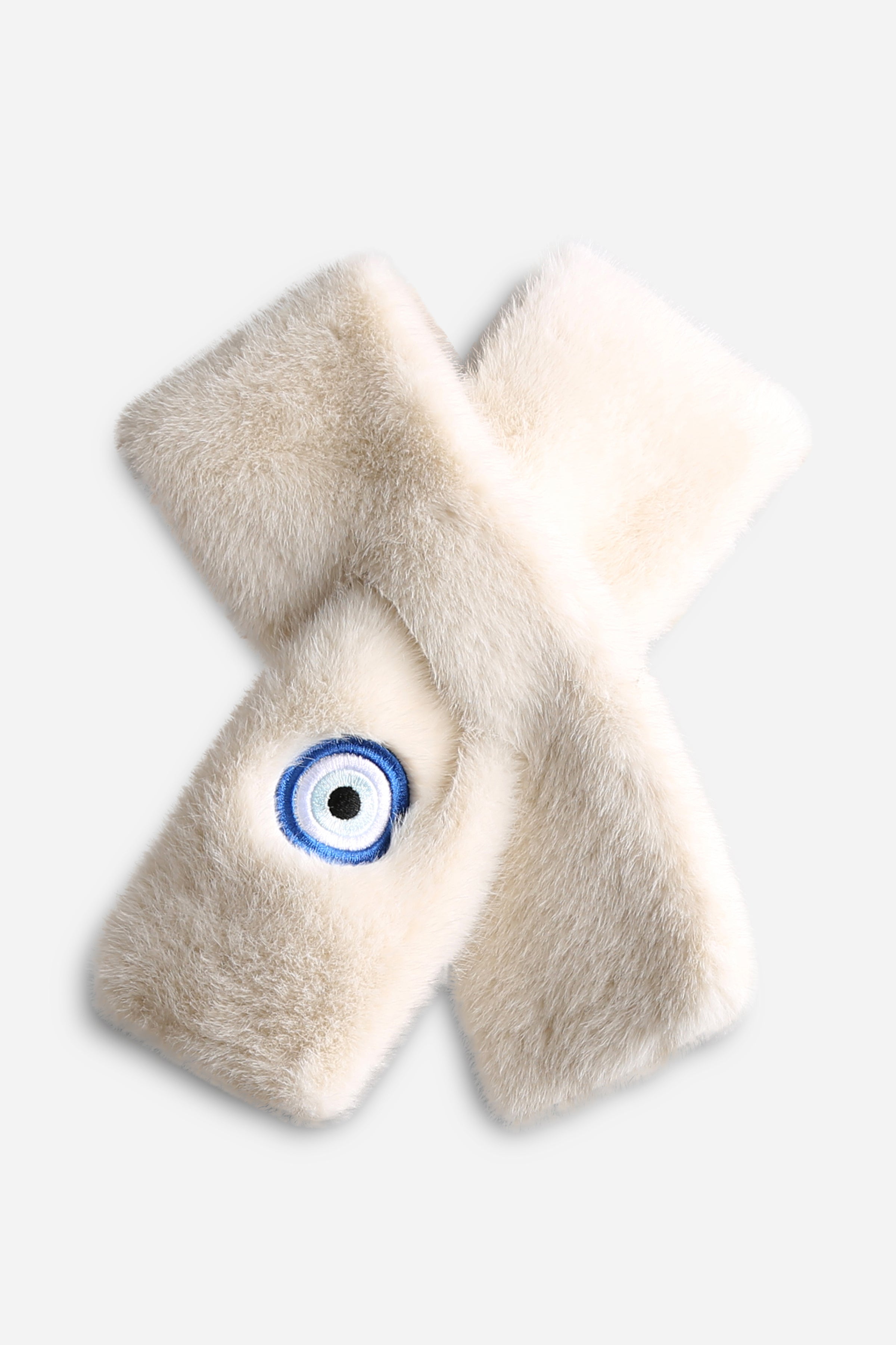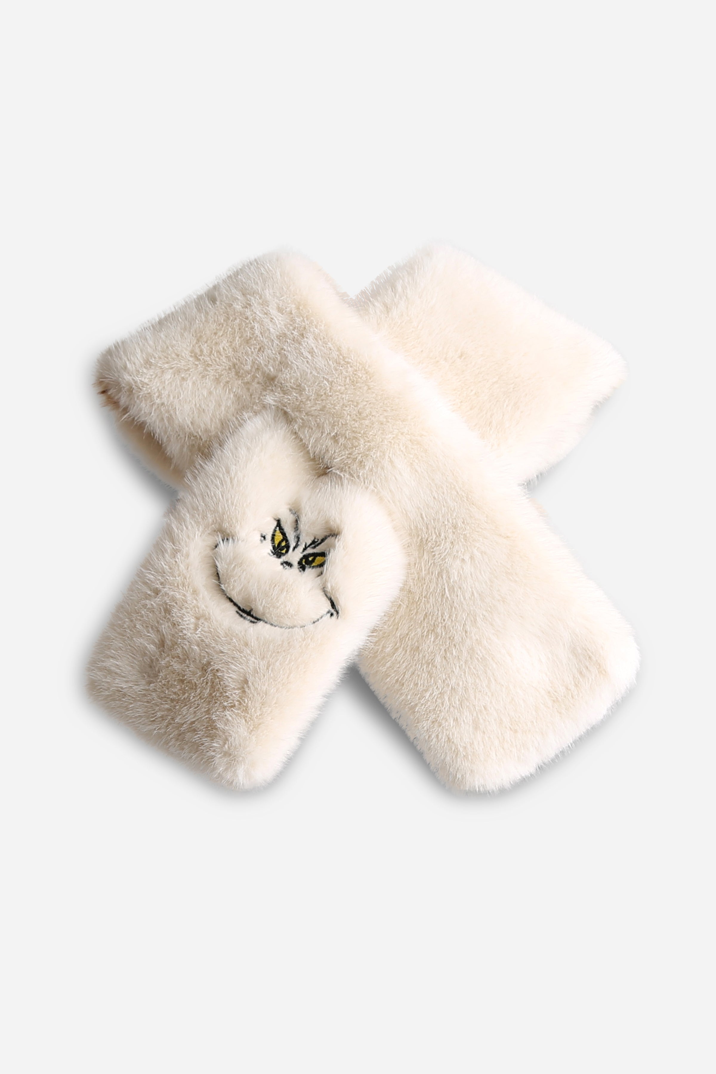 PATTERNED EMBROIDERED FAUX FUR PULL-THROUGH SCARF