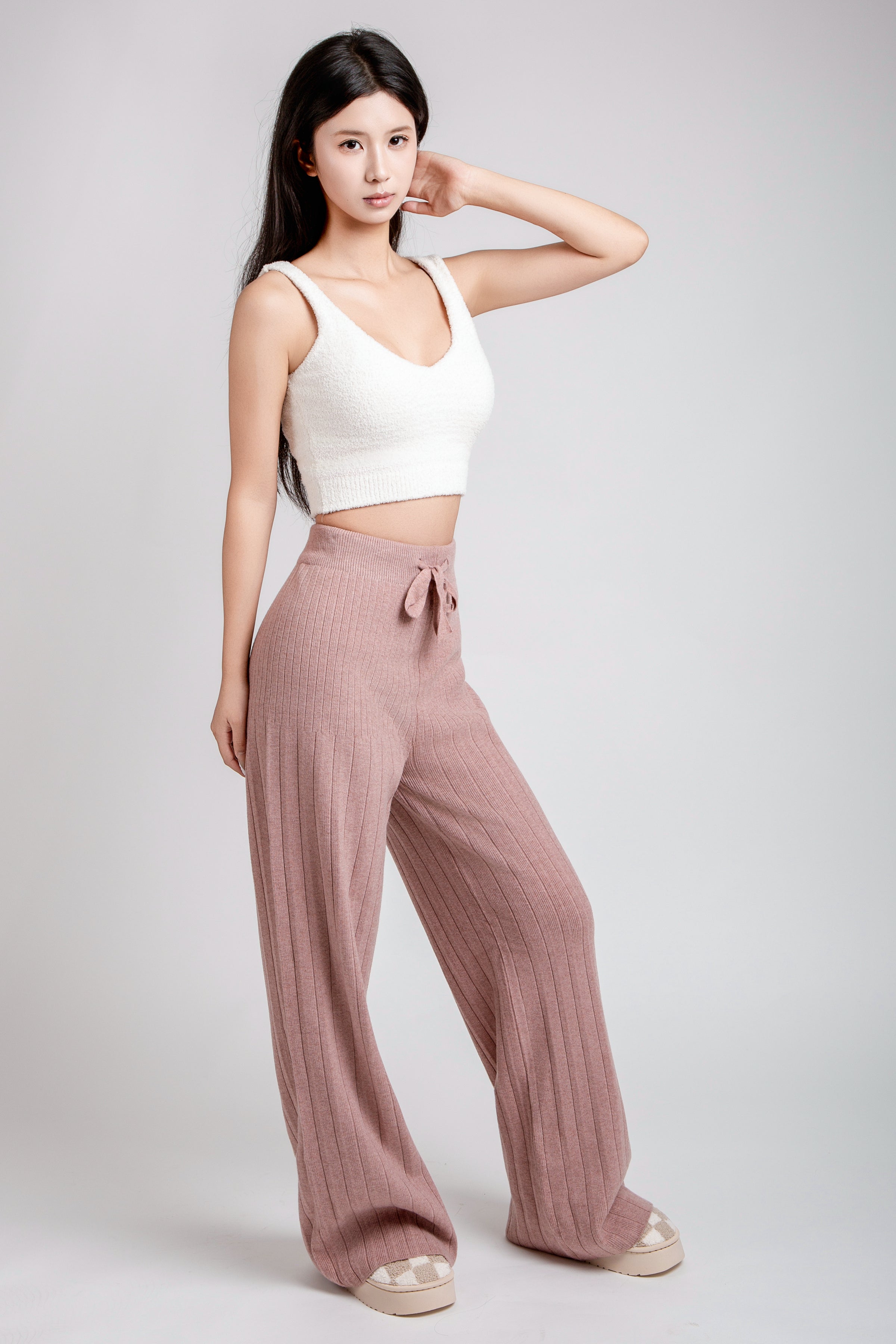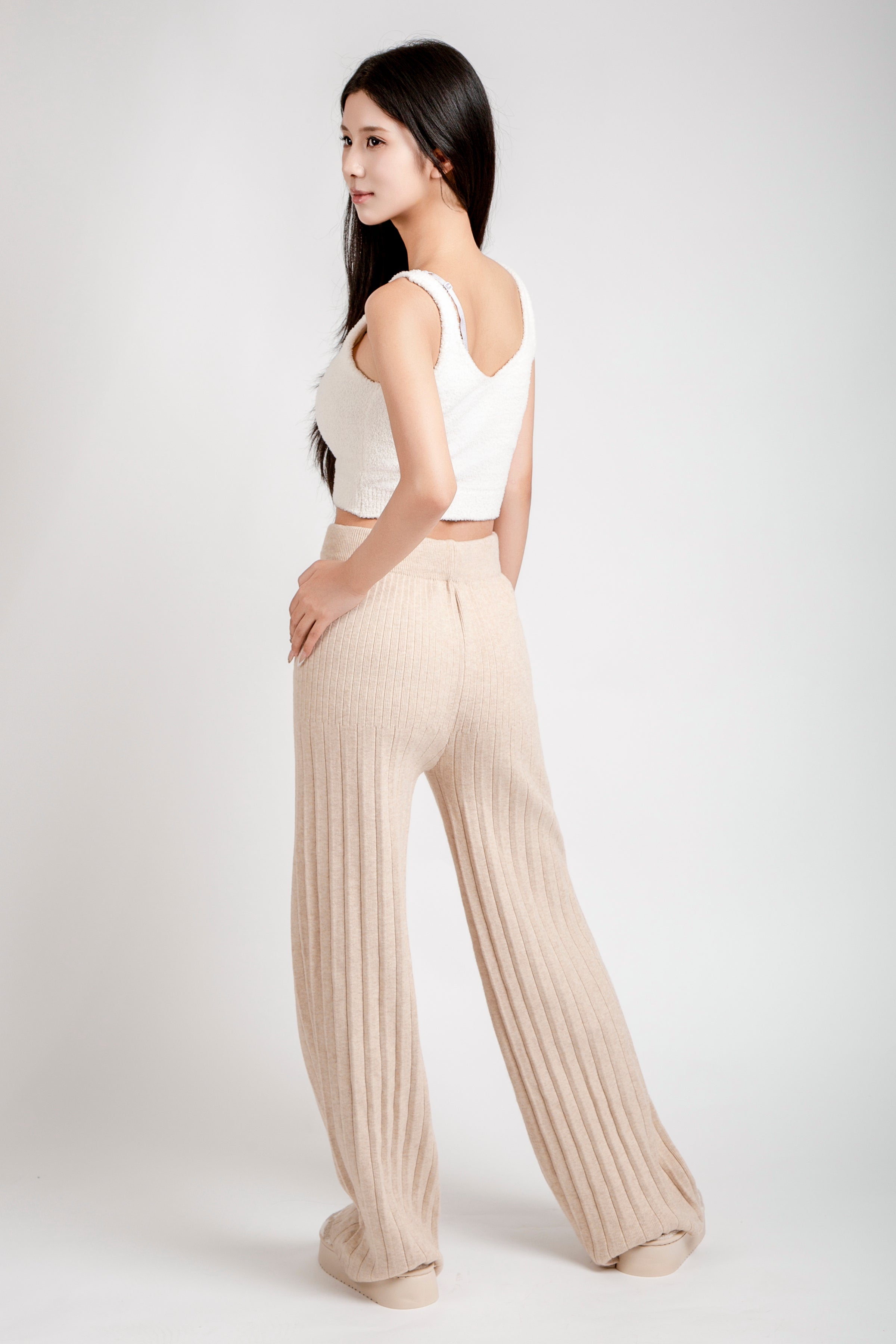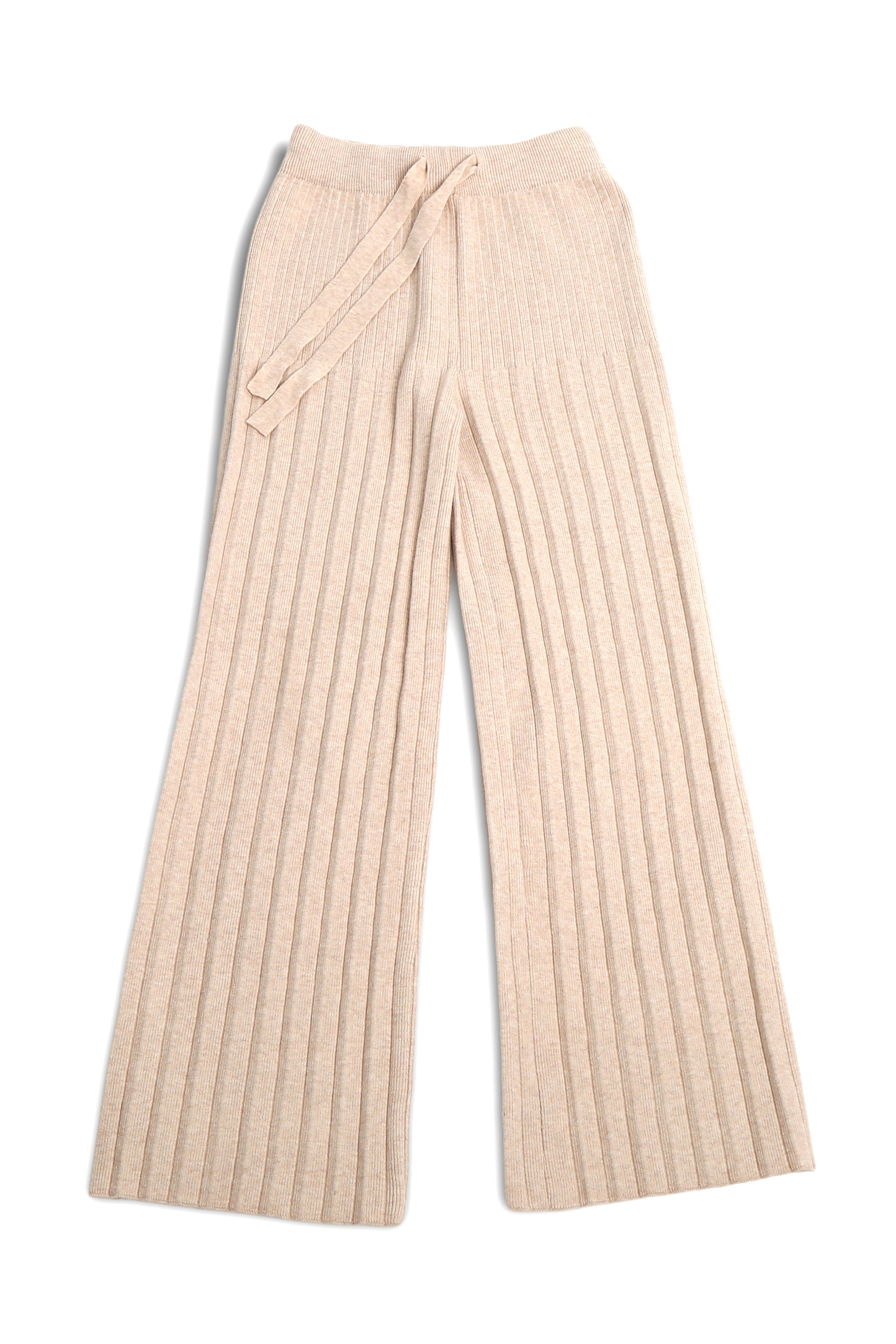 SOLID COLOR RIBBED WIDE-LEG LOUNGE PANTS W/ DRAWSTRING