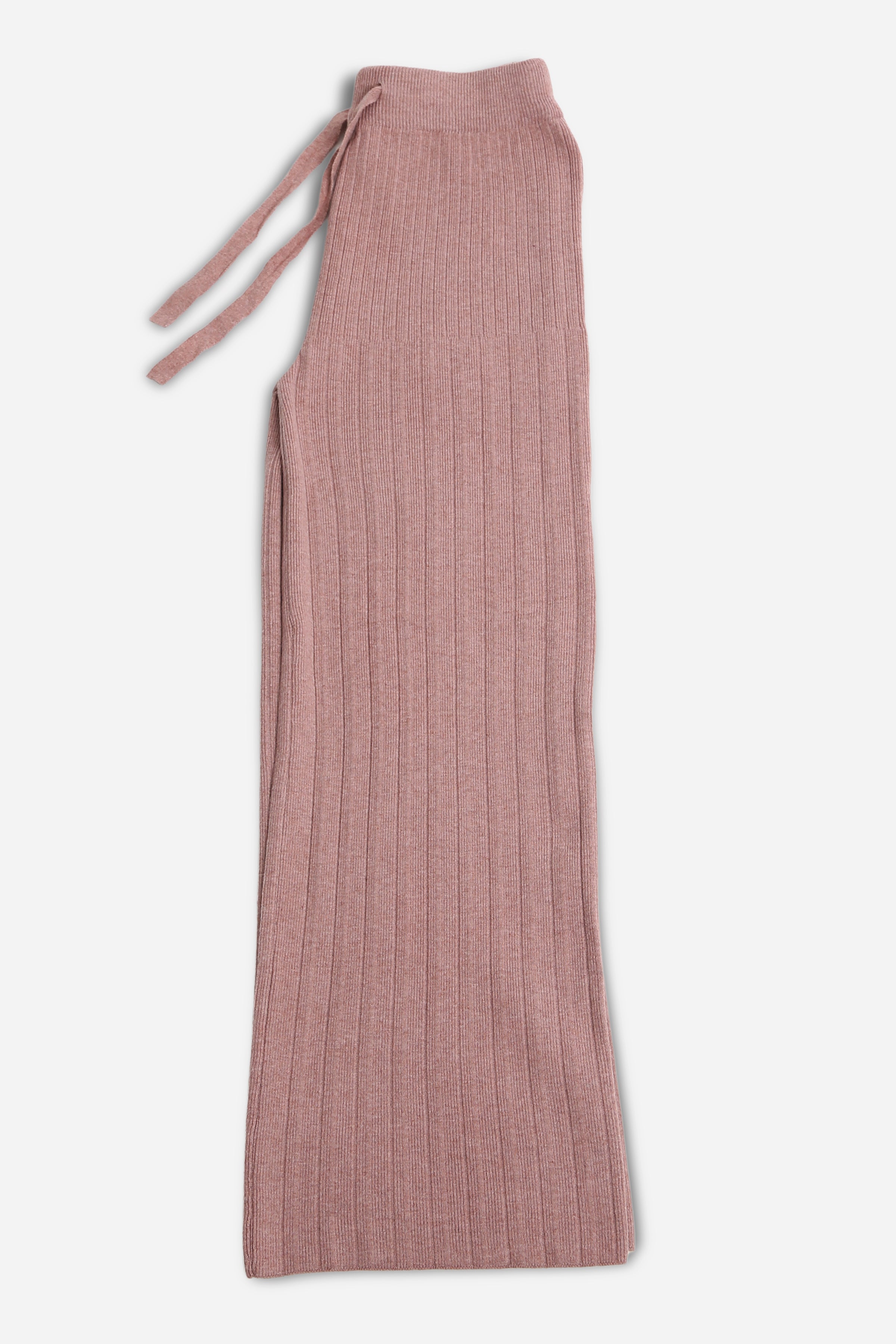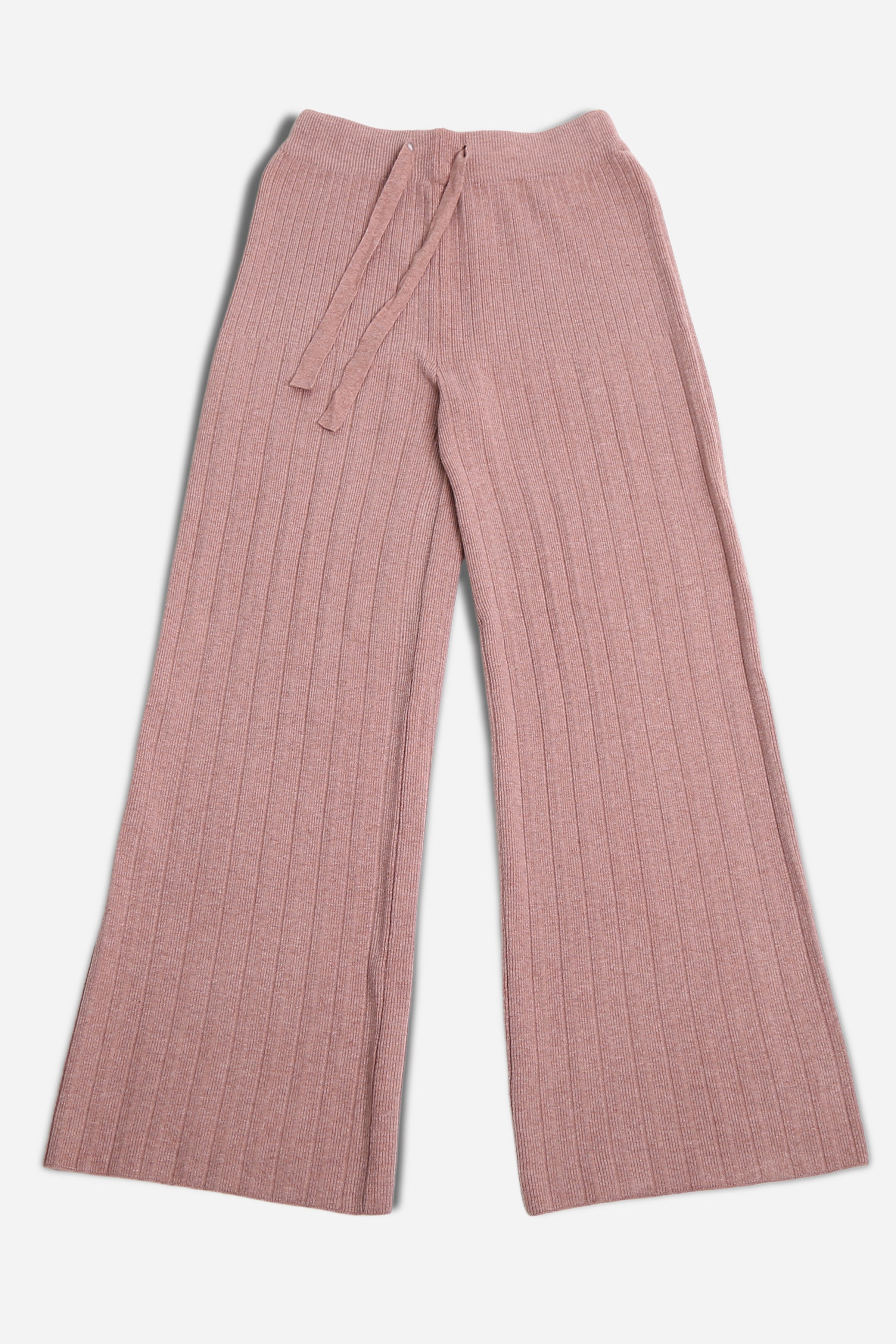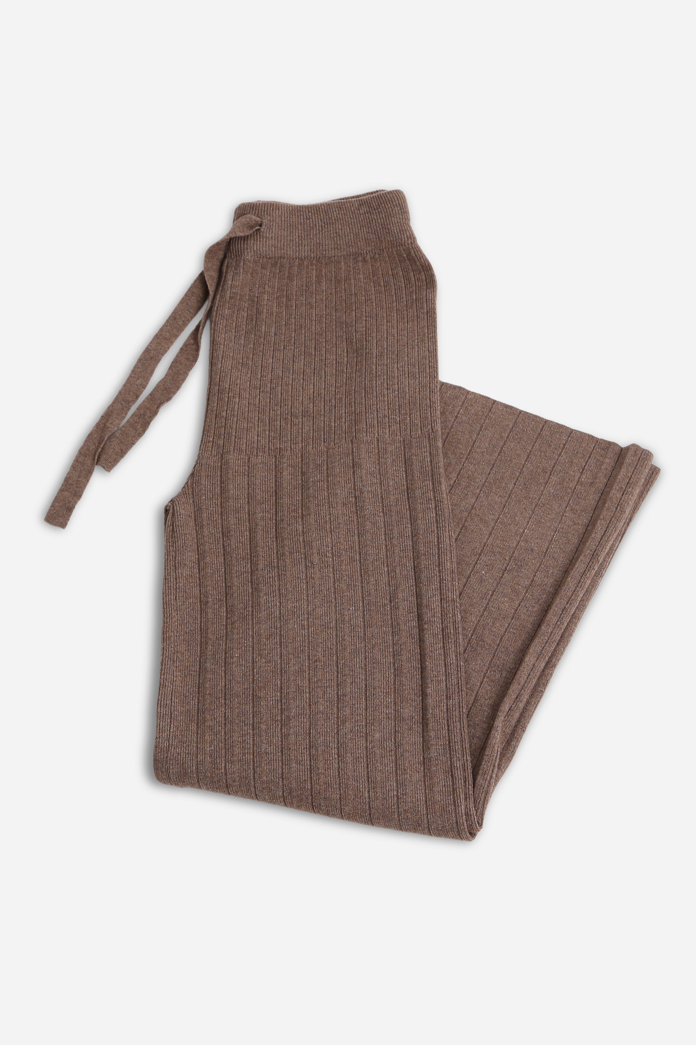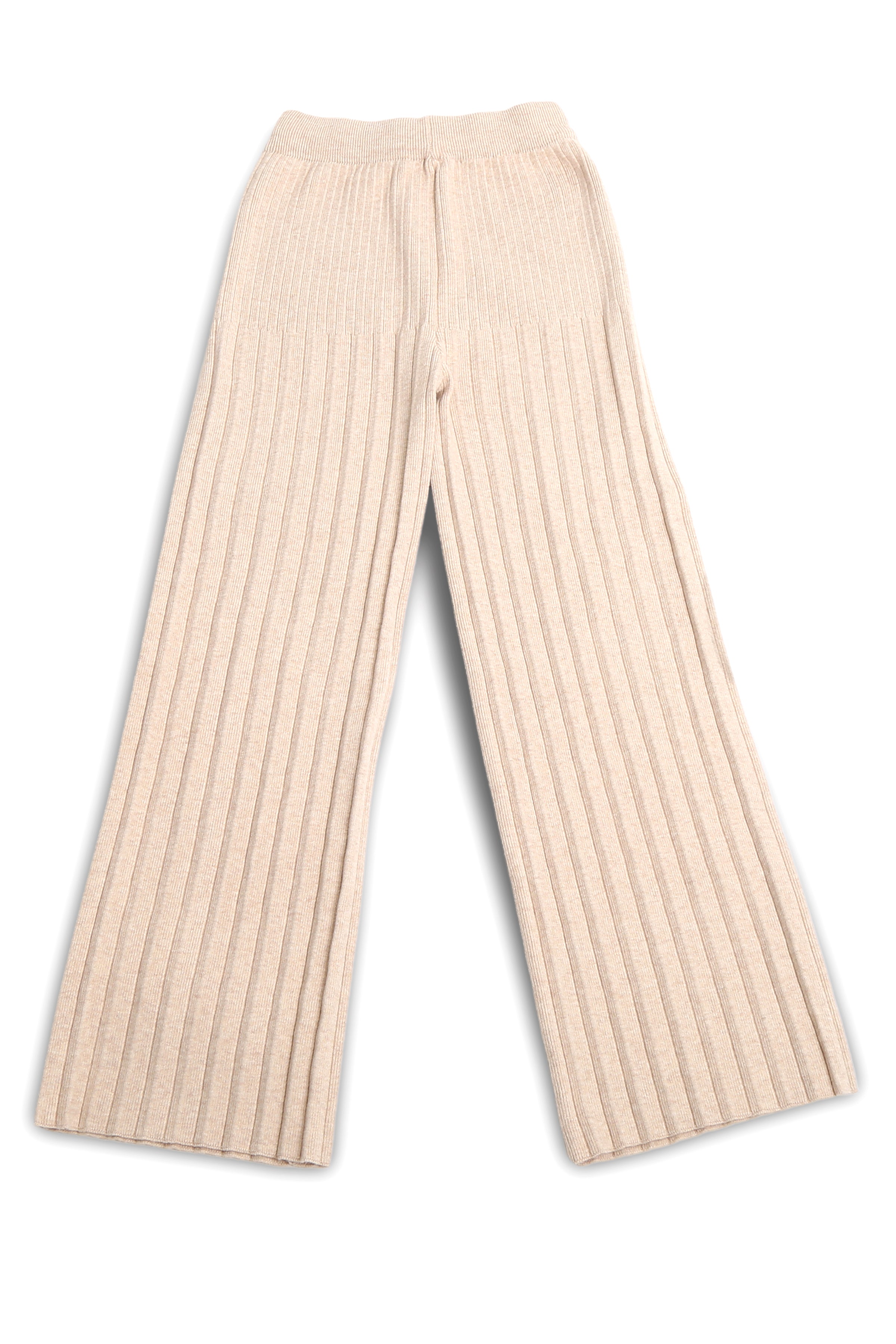 SOLID COLOR RIBBED WIDE-LEG LOUNGE PANTS W/ DRAWSTRING