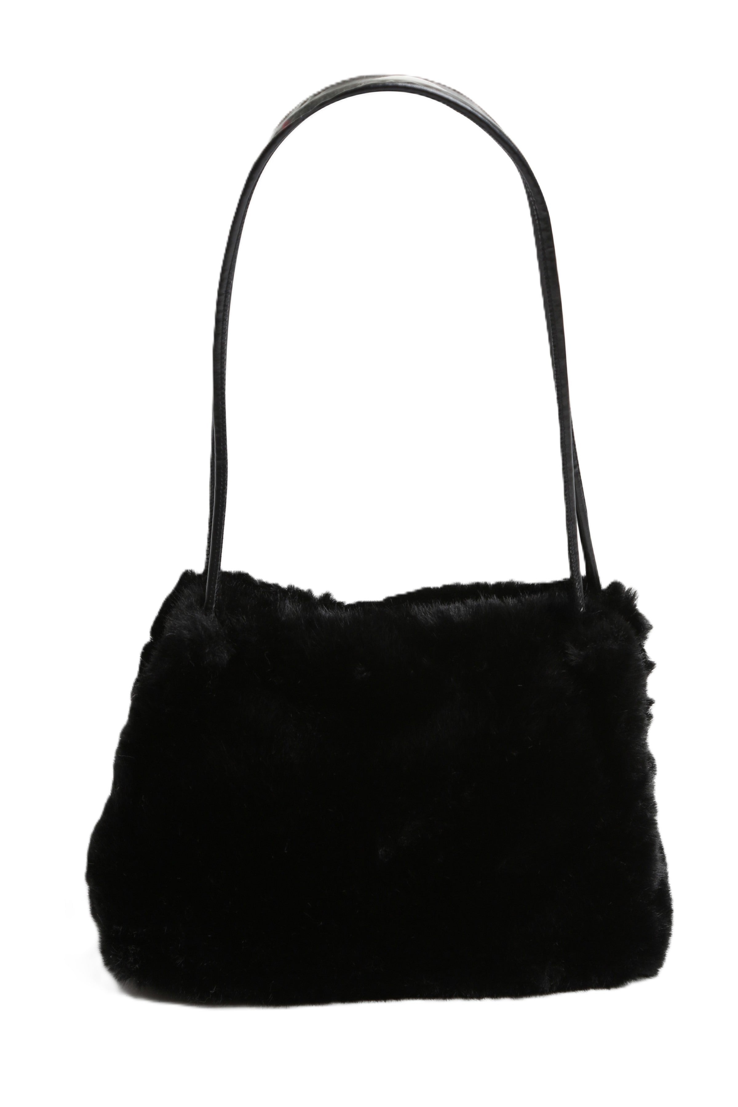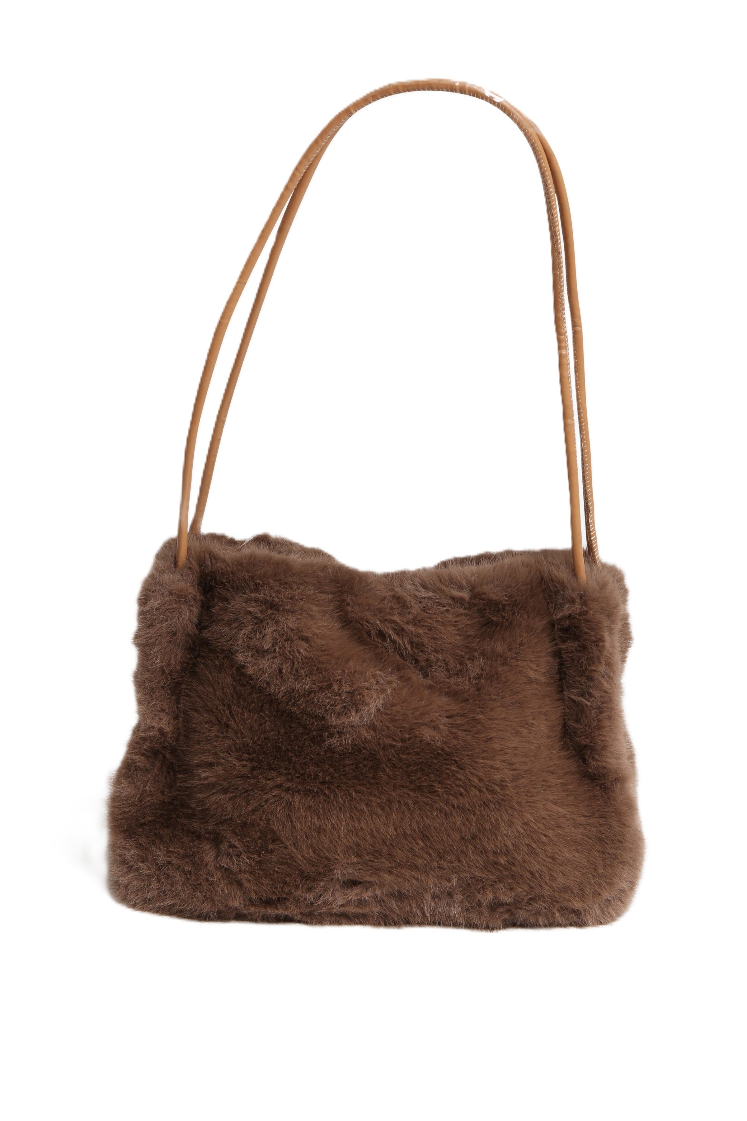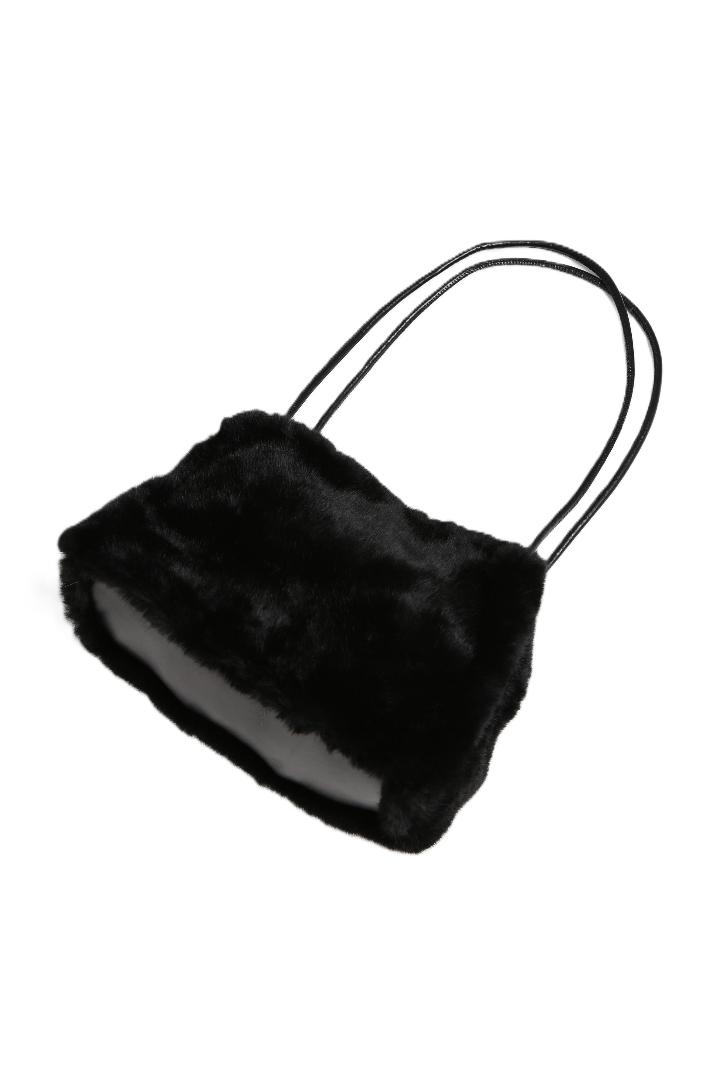 SOLID COLOR FAUX FUR HANDBAG W/ MAGNETIC SNAP CLOSURE