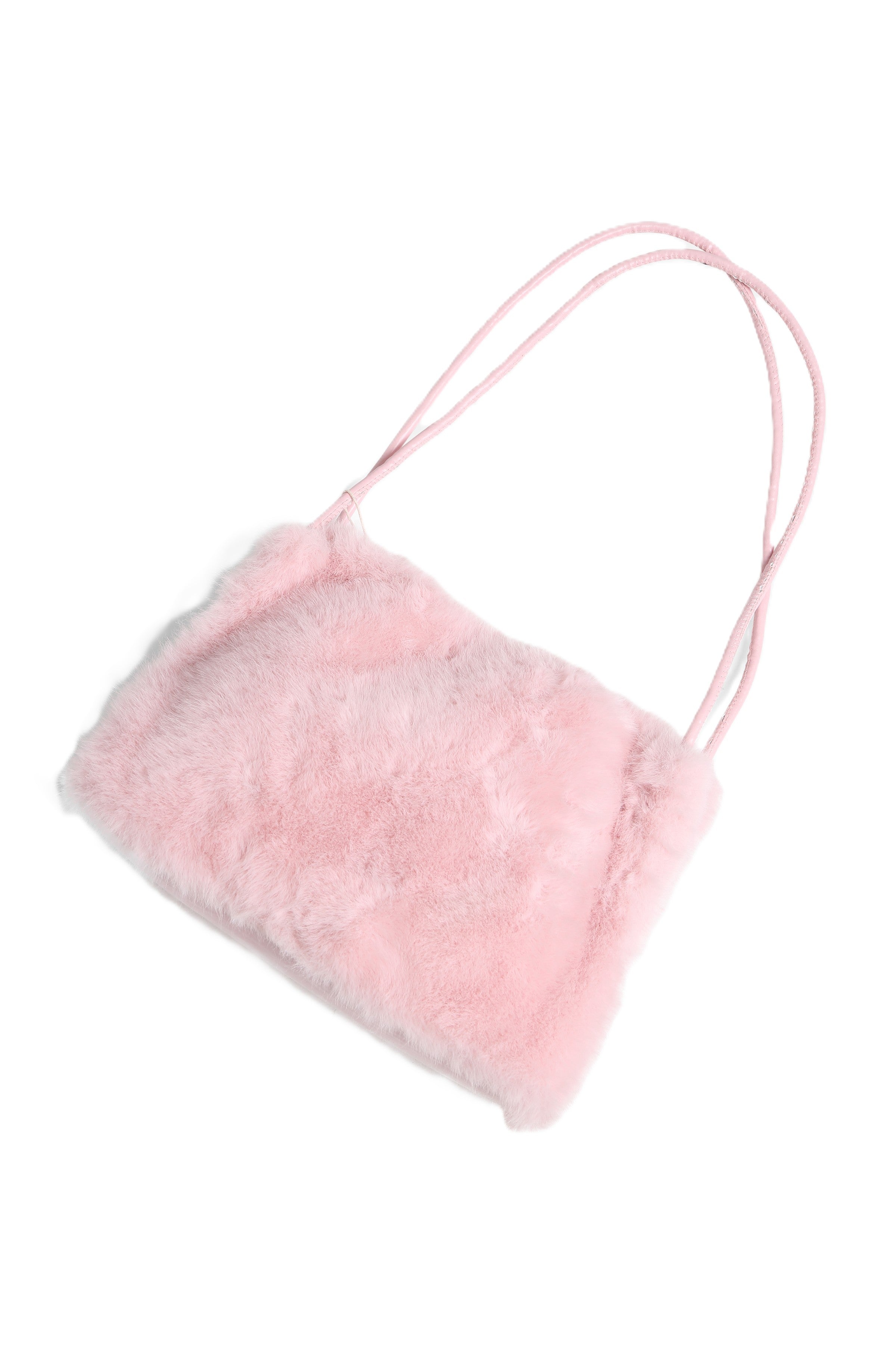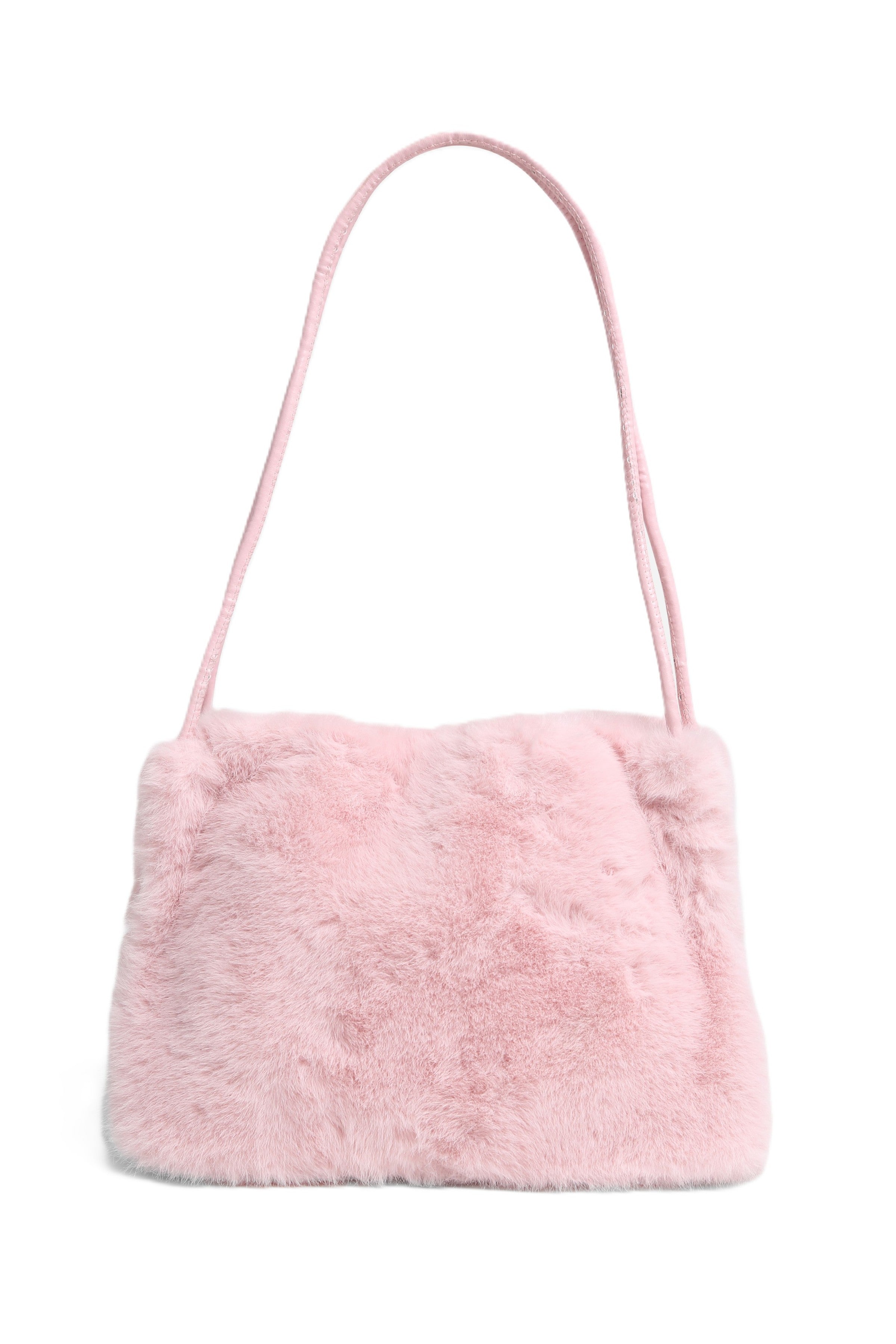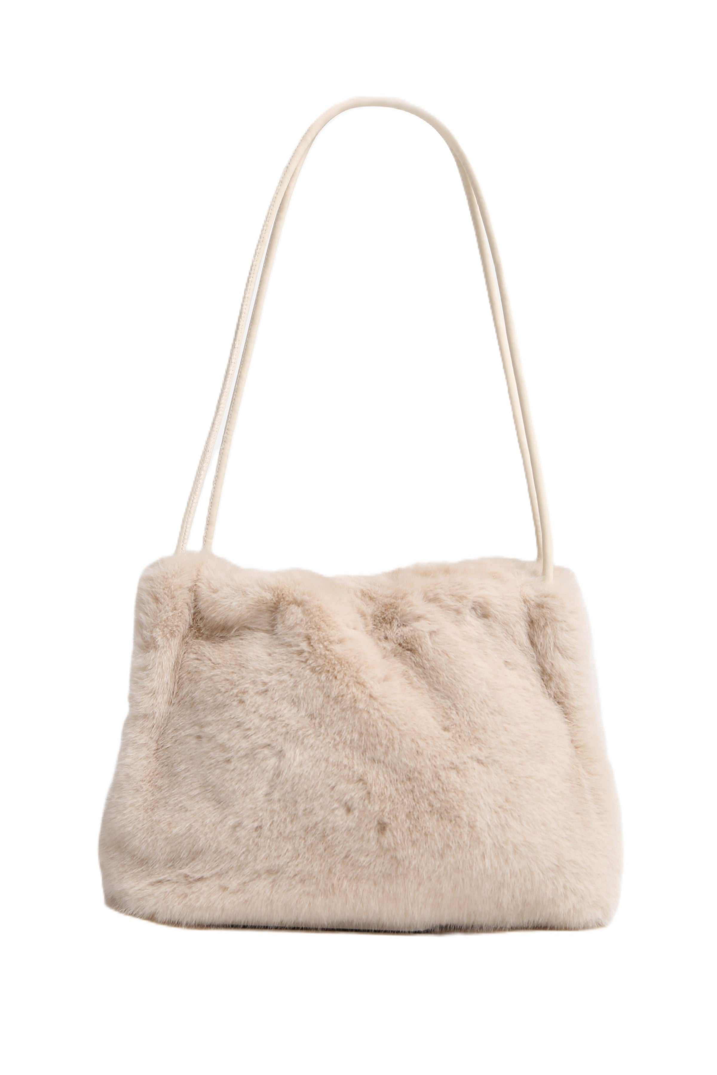SOLID COLOR FAUX FUR HANDBAG W/ MAGNETIC SNAP CLOSURE