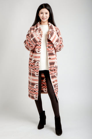 Tribal Pattern Oversized Shepra Jacket W/ Pockets Button Closure