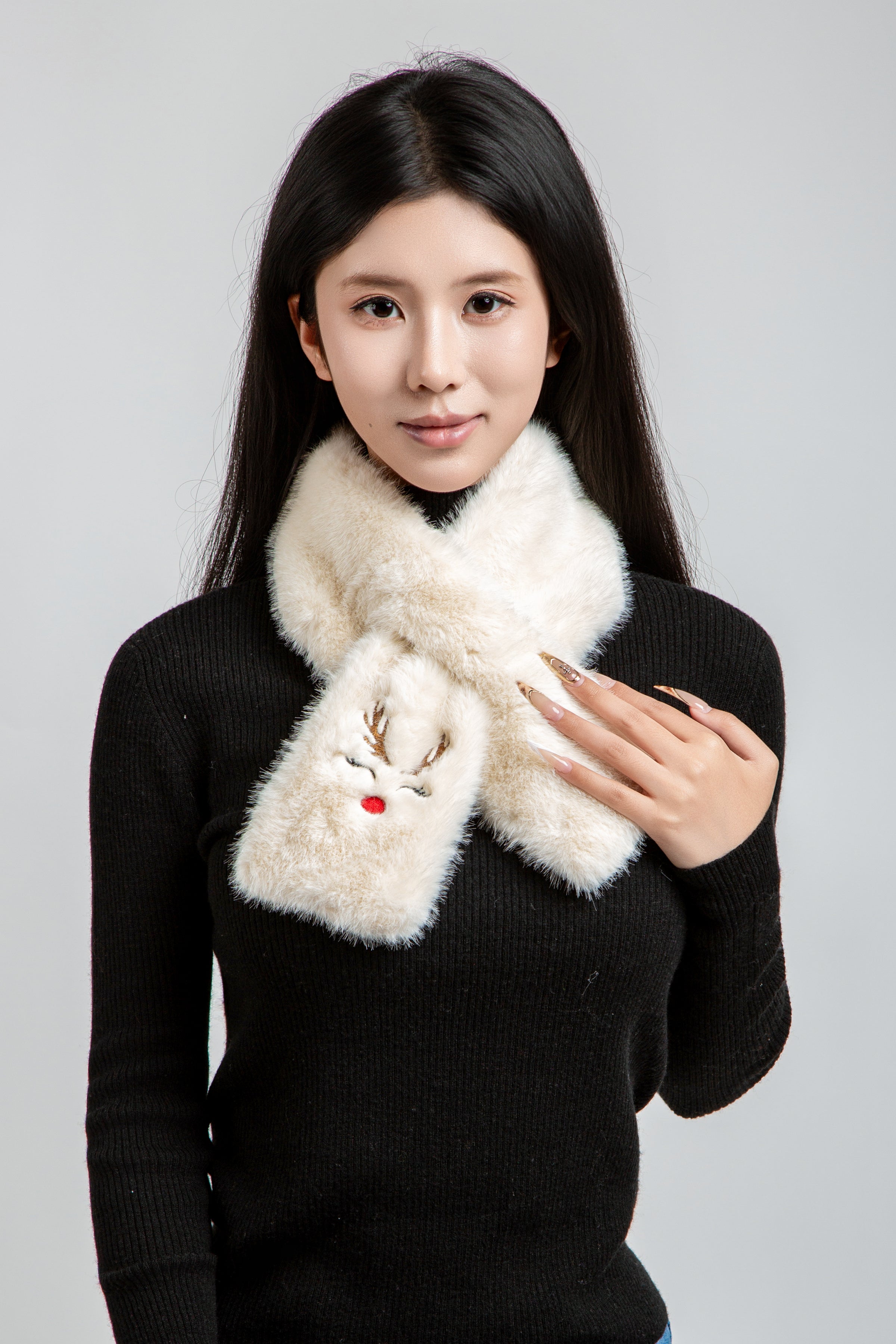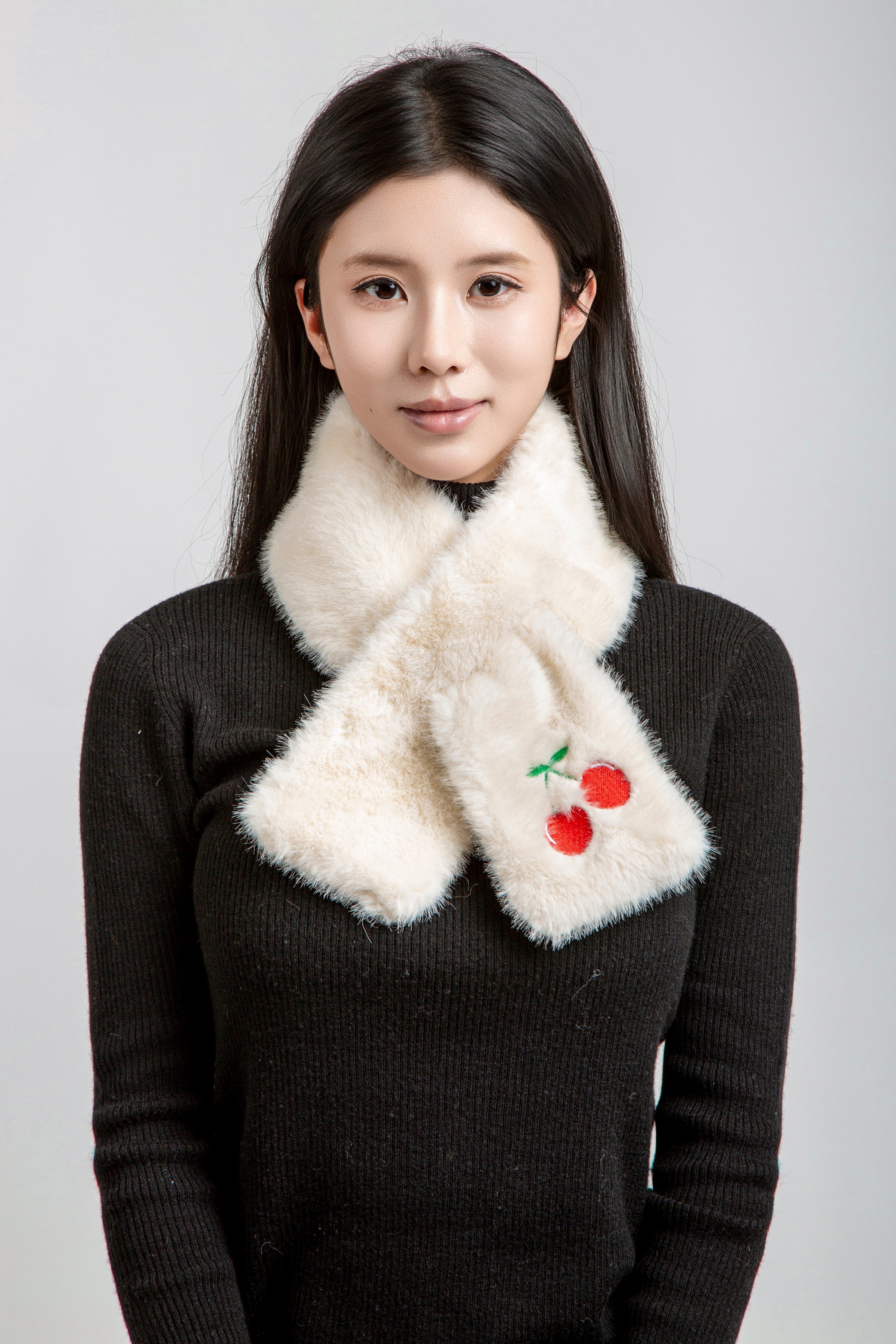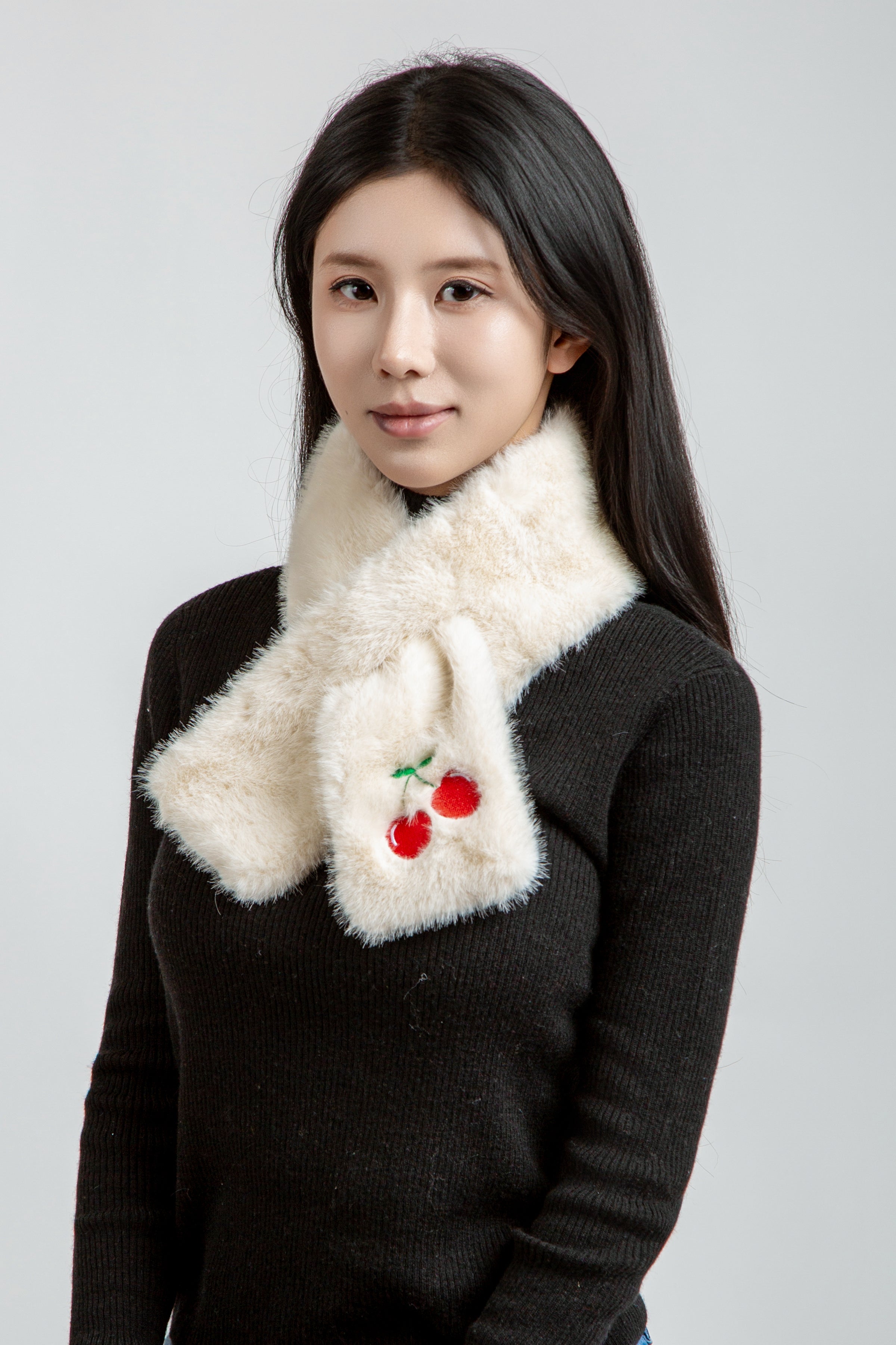 PATTERNED EMBROIDERED FAUX FUR PULL-THROUGH SCARF