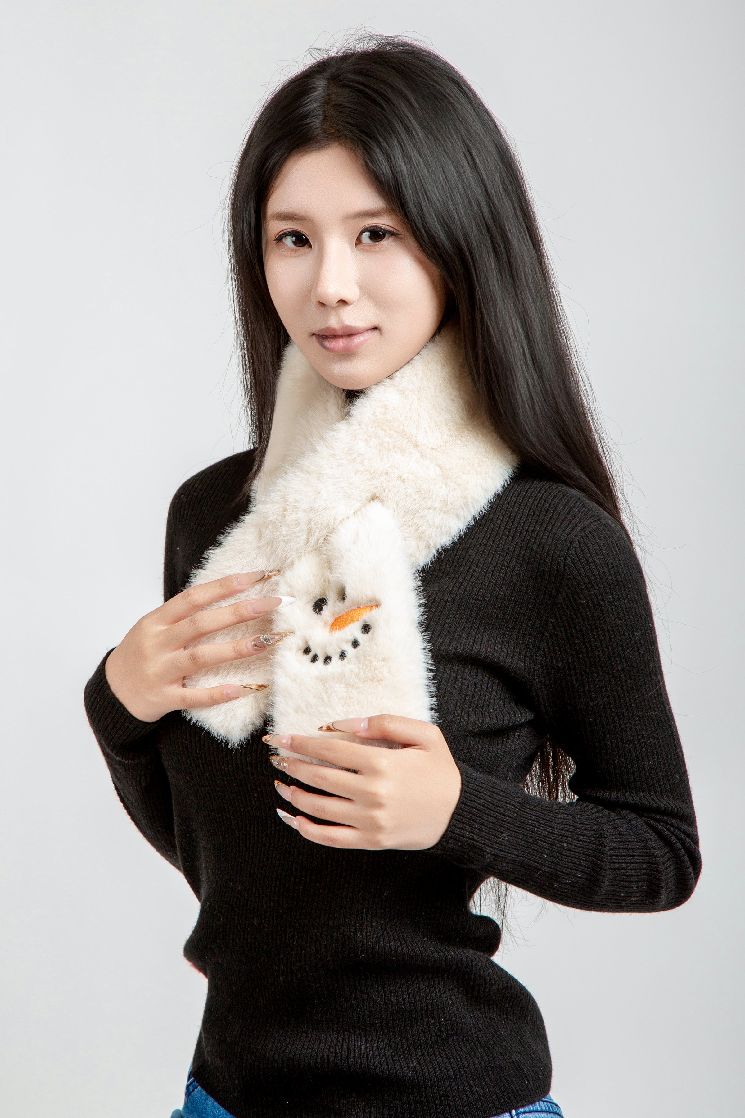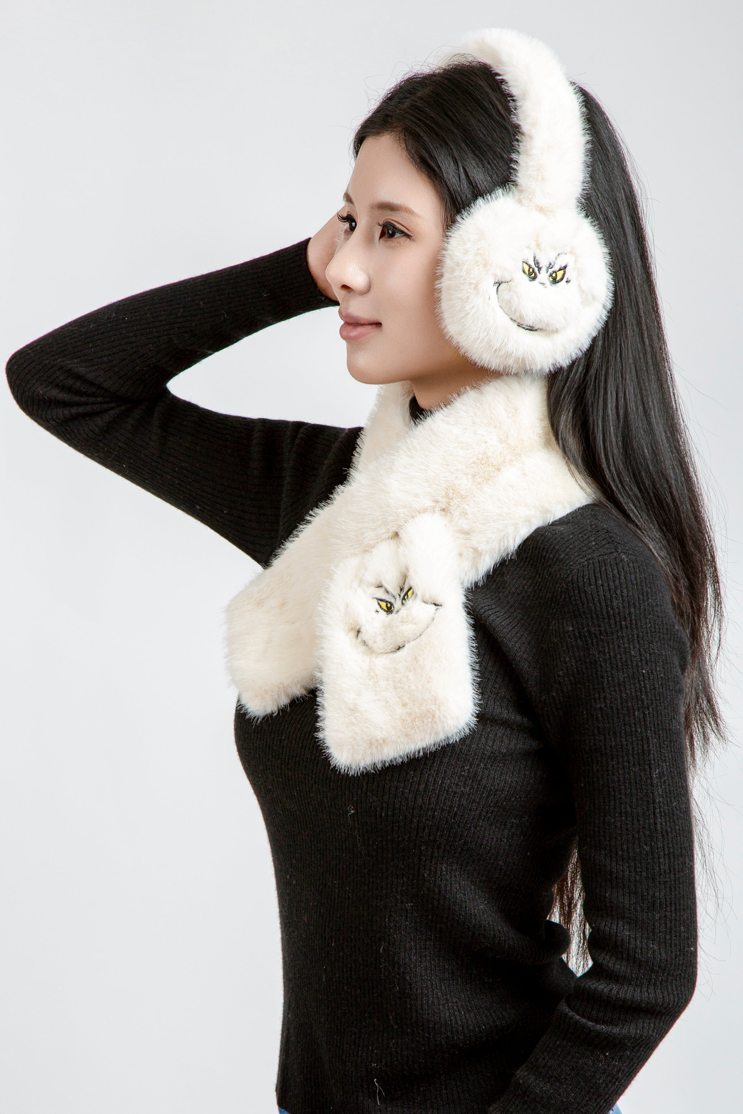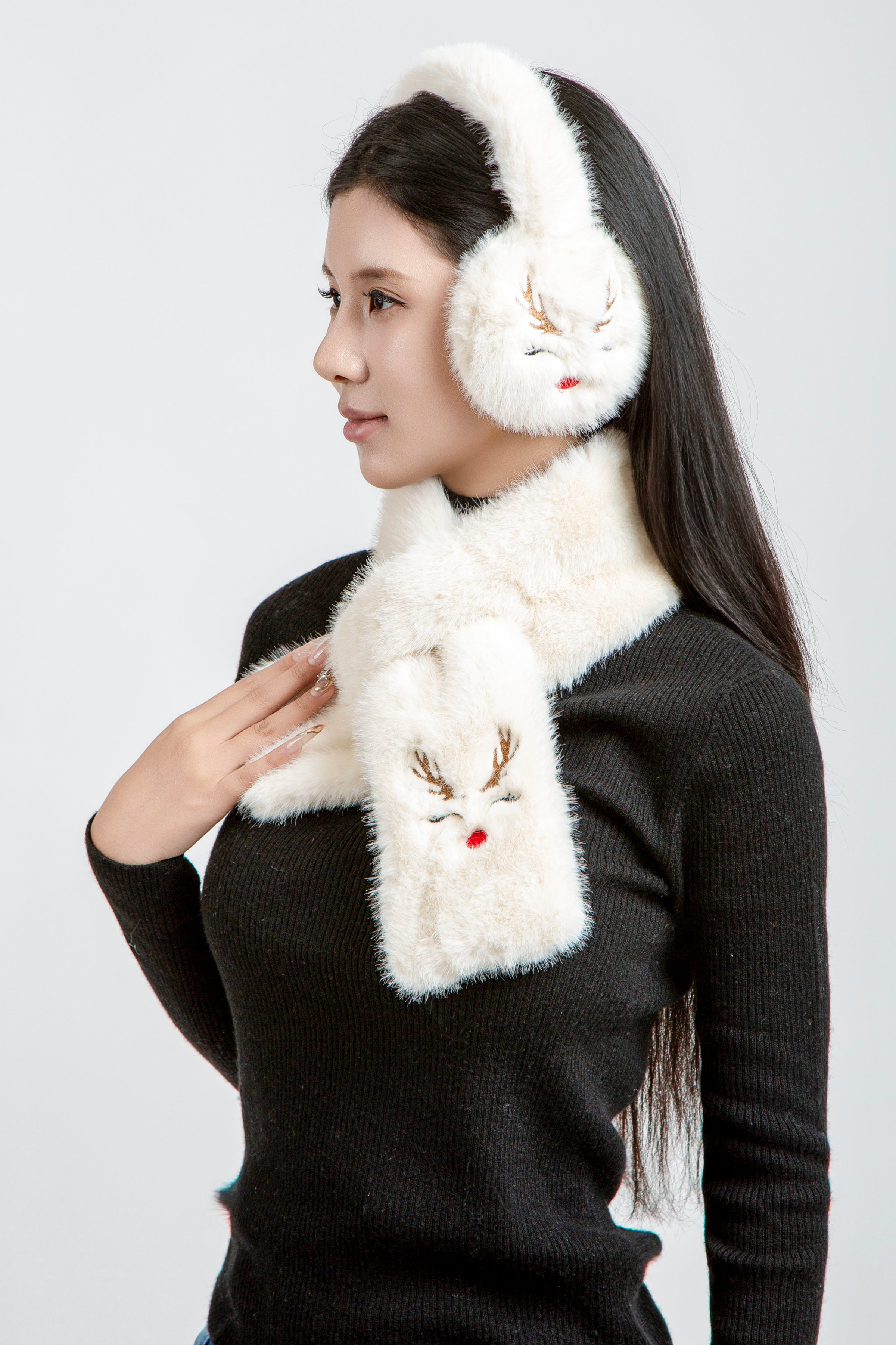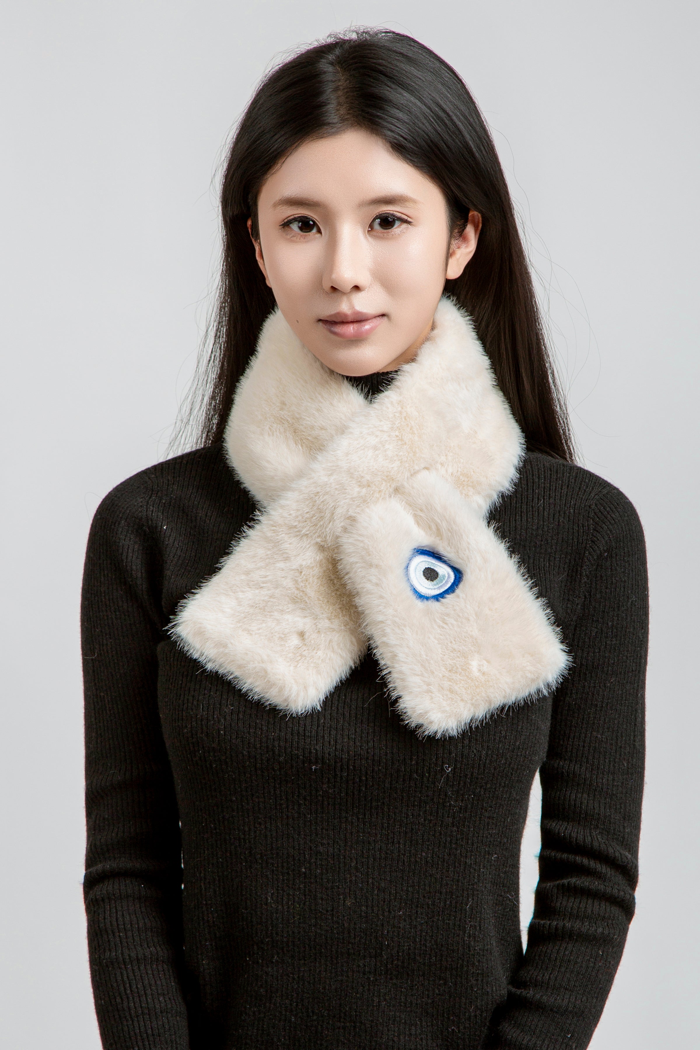 PATTERNED EMBROIDERED FAUX FUR PULL-THROUGH SCARF